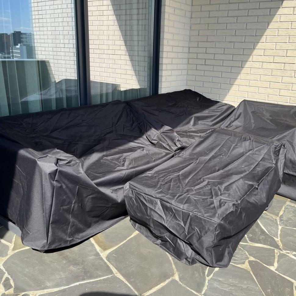 Комплект чехлов для защиты мебели от дождя, пыли, солнца для лаунж зоны ФЕСТА с трехместным диваном, изготовлен из ткани oxford, которая не пропускает воду Размеры и количество чехлов: Для дивана: 210 * 90 * 80 - 1 шт Для кресла: 75 * 90 * 80 - 2 шт Для столика 1: 121 * 62 * 42 - 1 шт Для столика 2: 51 * 51 * 42 - 1 шт