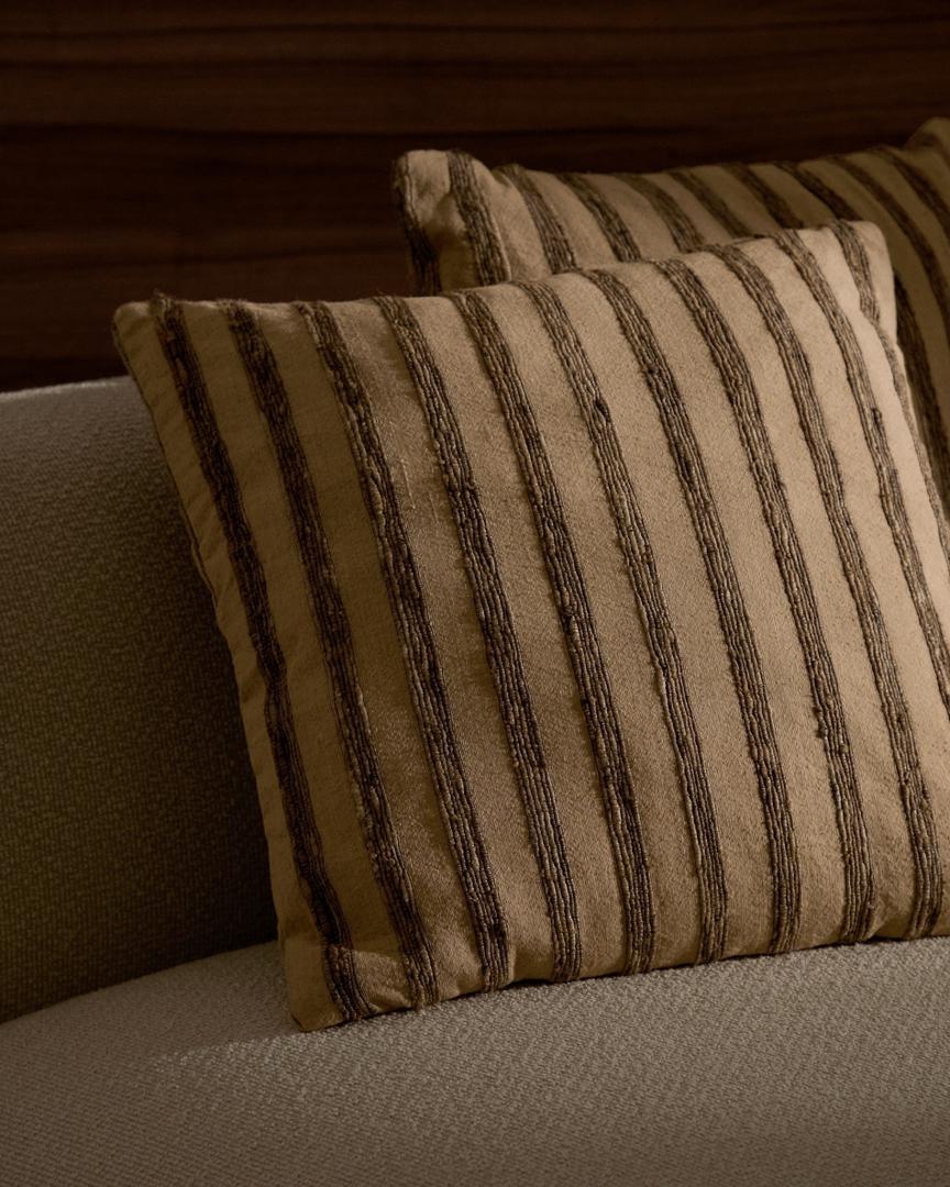 Чехол La Forma (ех Julia Grup) Чехол для подушки Enara из шелка и хлопка в бежево-коричневую полоску 45 x 45 см арт. 210746