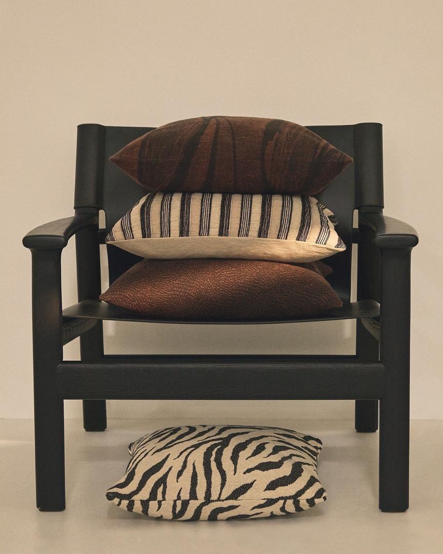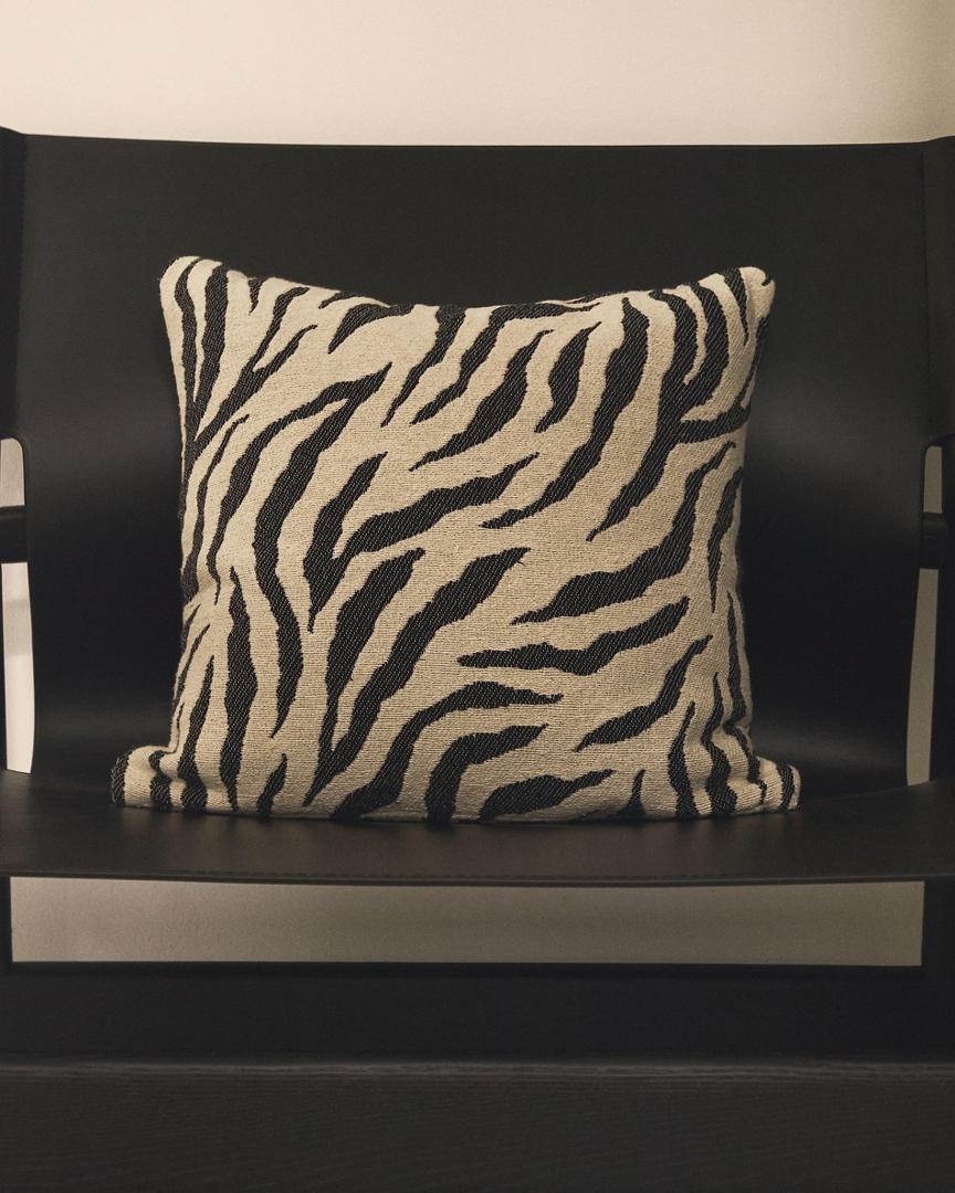 Чехол для подушки из хлопкового жаккарда с принтом «зебра». Выткано вручную.