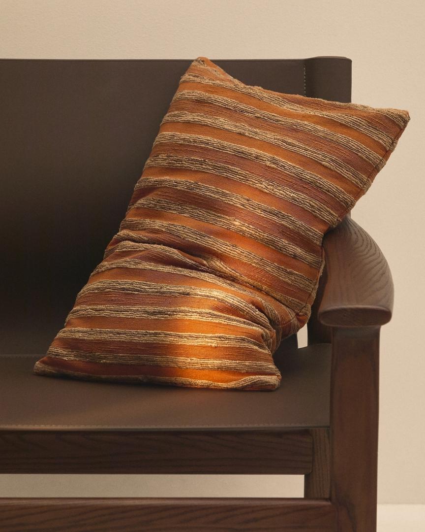 Чехол на подушку выполнен из смеси шёлка. Высококачественный шёлк обеспечивает мягкость, высокую прочность и гипоаллергенность. Полосатый жаккардовый узор. Изготовлен вручную.