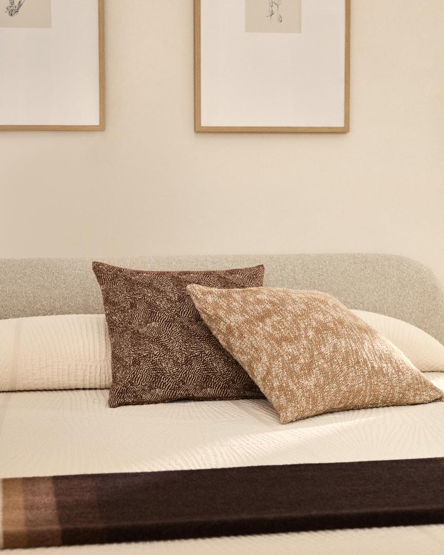 Этот чехол для подушки сочетает в себе непреходящую элегантность жаккарда, теплоту землистых тонов и контрастность органических форм. Хлопковая ткань обладает приятной и прочной текстурой, которая украсит любое пространство. Каждый чехол изготавливается вручную, что делает его уникальным, несмотря на небольшие вариации.