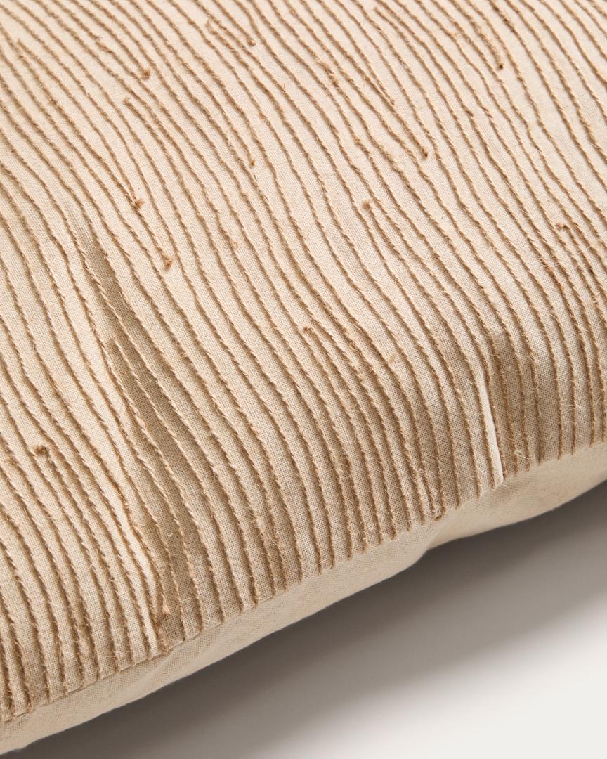 Наволочка Belae изготовлена из хлопка, приятного на ощупь материала. Она выделяется вышивкой из джута, которая добавляет текстуру и создает легкий рельефный эффект на поверхности. Вышивка выполнена вручную, поэтому возможны небольшие вариации, что делает каждое изделие уникальным.
