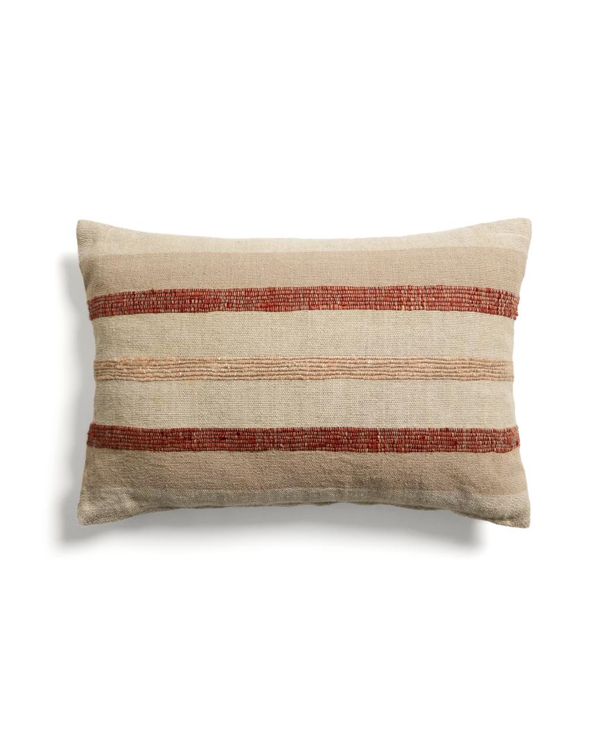Чехол для подушки Taraia изготовлен из хлопка и вискозы, приятных на ощупь. Толстые линии, проходящие по поверхности, создают контраст ткани. Каждое изделие соткано вручную и имеет небольшие вариации из-за особенностей производственного процесса.
