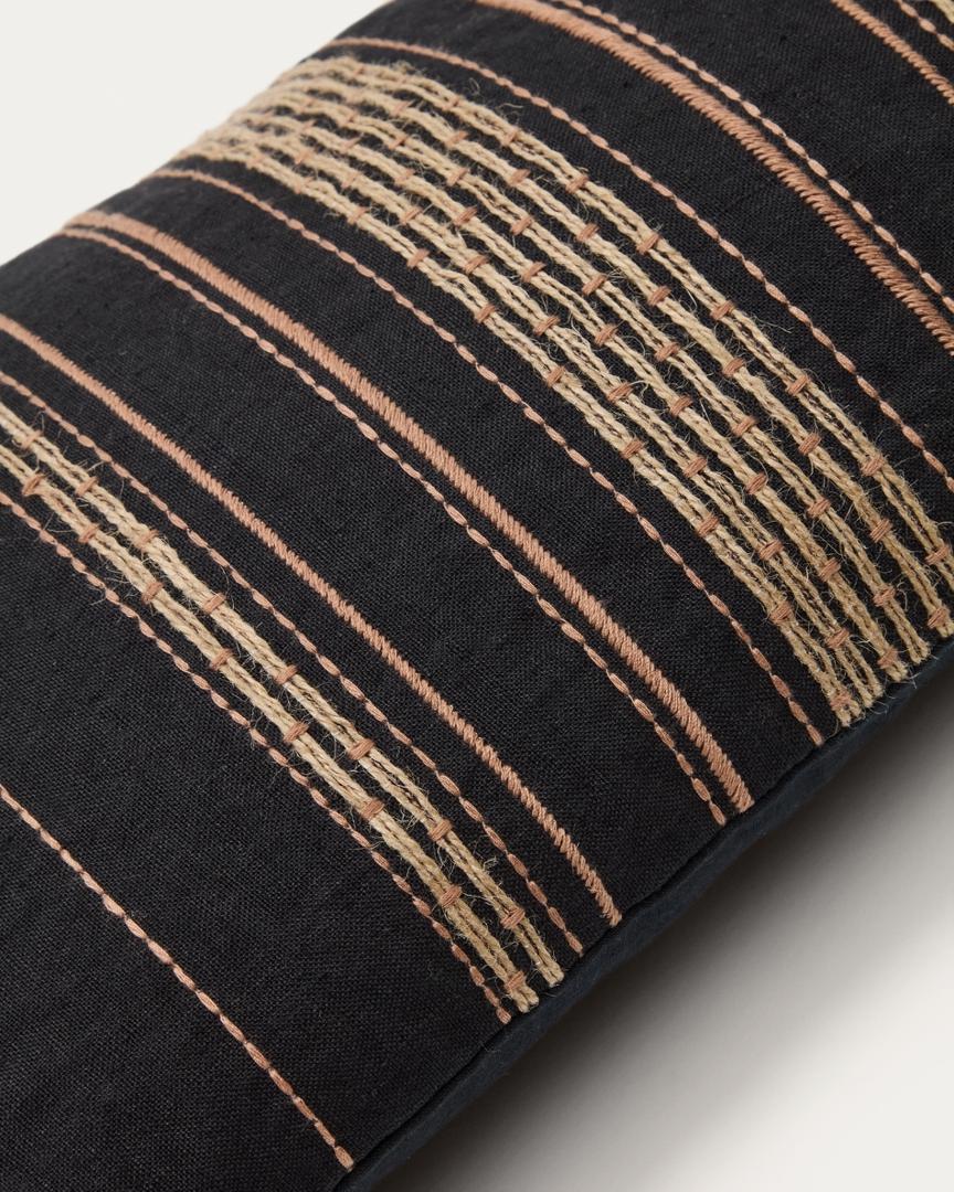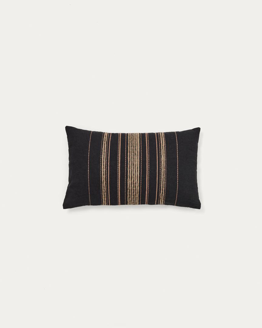Чехол La Forma (ех Julia Grup) Чехол для подушки Sairu из льна черного цвета с бежевой вышивкой 30 x 50 см арт. 262055