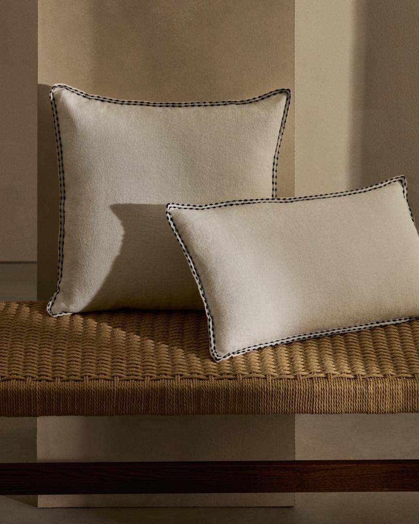 Обновите свое украшение чехлом для подушки Satol, сделанным из хлопка с контрастным черным вышитым краем. Современный и тонкий штрих, который украсит любую комнату.