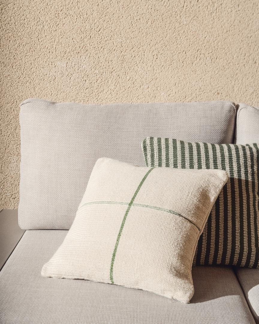 Чехол для подушки Atima изготовлен из 100% ПЭТ-волокон, материала, полученного из переработанных бутылок, который сочетает в себе прочность и мягкость. Жаккардовый узор добавляет текстуру и аккуратный визуальный завершающий штрих. ПЭТ-волокна легко чистятся и устойчивы к перепадам температуры. Это универсальный предмет мебели, подходящий как для помещений, так и для улицы, созданный для того, чтобы обеспечить комфорт и гармонию в различных интерьерах.