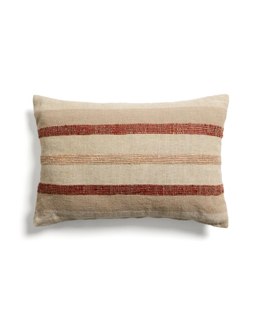 Чехол для подушки Taraia изготовлен из хлопка и вискозы, приятных на ощупь. Толстые линии, проходящие по поверхности, создают контраст ткани. Каждое изделие соткано вручную и имеет небольшие вариации из-за особенностей производственного процесса.