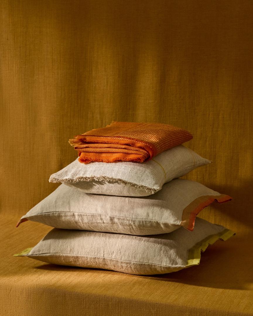 Коллекция Disea включает в себя наволочки из льна — износостойкой и приятной на ощупь ткани. Боковые стороны украшены цветными деталями, которые создают контраст и подчеркивают изделие. Каждая наволочка изготавливается вручную, поэтому возможны незначительные вариации из-за особенностей производственного процесса.