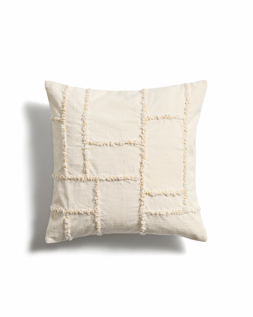 Коллекция Verion состоит из наволочек с вышитыми вручную геометрическими деталями. Штрихи создают линейный узор, придающий ткани рельеф. Ручная вышивка может приводить к небольшим вариациям, которые являются неотъемлемой частью процесса, делая каждое изделие уникальным.