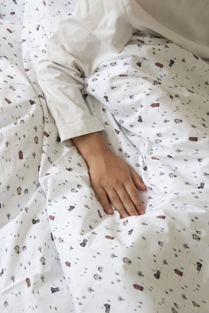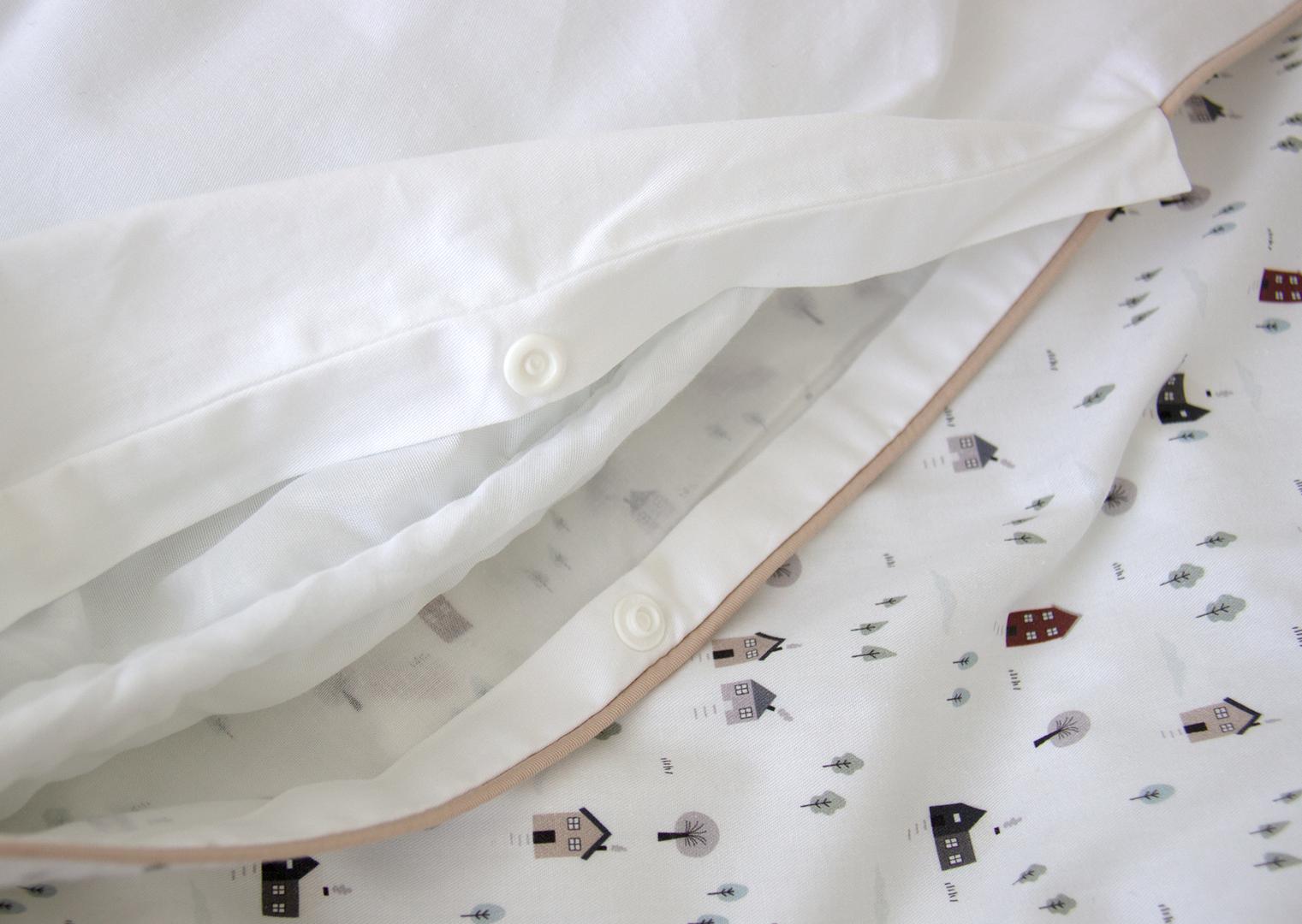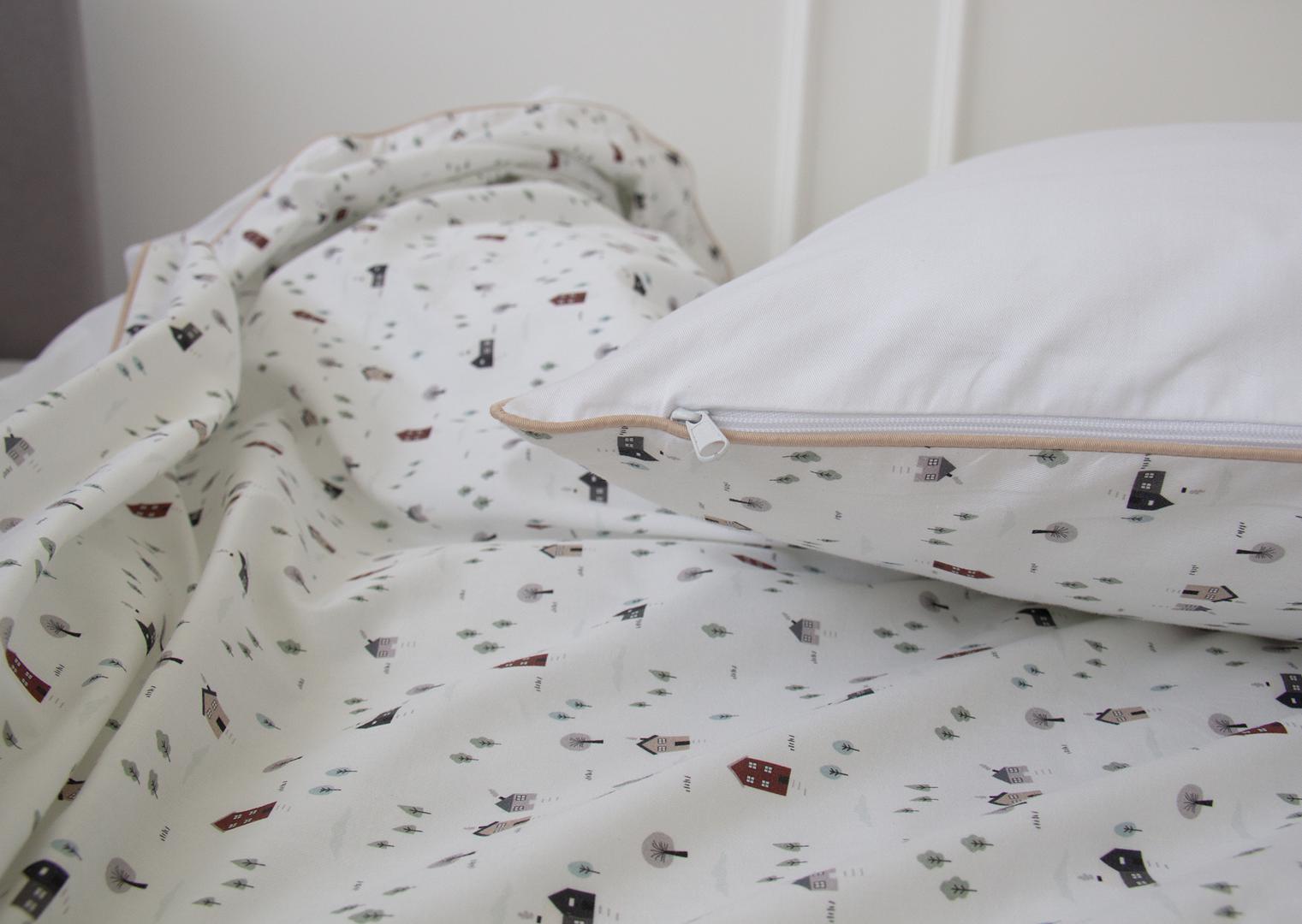 Комплект постельного белья «Домики» (кант, сатин) Состав: пододеяльник 150х200 см, наволочка 70х50 см Материал: 100% хлопок (сатин)