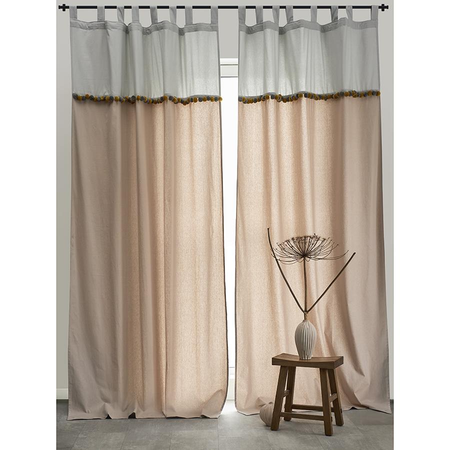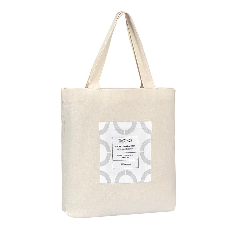 Комплект Tkano Штора из хлопка с помпонами бежево-серого цвета из коллекции essential, 150х290 см арт. TK23-CUR0002