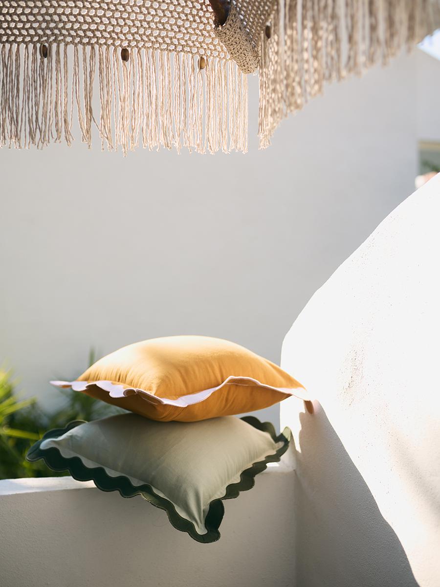 Чехол на подушку с контрастным кантом зеленого цвета из коллекции Trendy Ruffles привнесет свежий акцент в оформление гостиной, спальни или зоны отдыха. Текстиль с волнистой отделкой, напоминающей изящные раковины морских гребешков, стал ярким элементом стиля Ар Деко – и сейчас возвращается в моду, появляясь в самых актуальных интерьерных решениях. Особенности и преимущества: - Выполнен из экологичного, прочного и долговечного 100% хлопка – не деформируется, не линяет, устойчив к образованию катышков. - Имеет трендовый дизайн, что позволяет использовать такую подушку в качестве оригинального акцента. - Оснащен застежкой-молнией, благодаря чему легко снимается. - Данная линейка представлена в разных цветовых решениях, что позволяет выбрать наиболее подходящий вариант, в зависимости от оформления интерьера и личных предпочтений. Размеры изделия указаны без учета бахромы и декоративных элементов. Материал: 100% хлопок. Плотность: 185 г/м2. Размеры: 50х50 см. Размеры без декоративного бортика: 40х40 см. ! Деликатная стирка при температуре 30° C ! Гладить при максимальной температуре 110° C ! Возможна барабанная сушка при низкой температуре ! Не отбеливать ! Сухая чистка запрещена