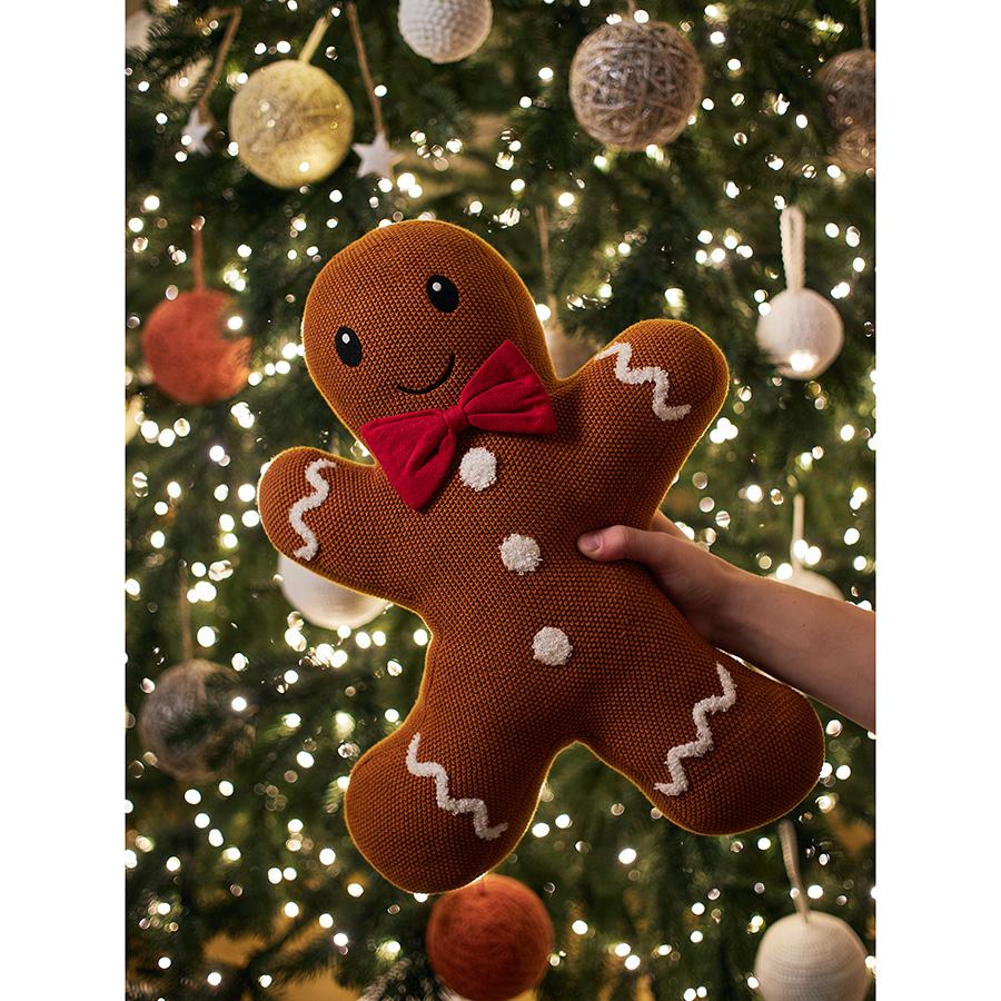 Подушка вязаная Classy gingerbread из коллекции New Year Essential позволит окунуться в сказочную атмосферу новогодних праздников. Выполненная в форме рождественского печенья, она станет ярким визуальным акцентом, добавив в интерьер ощущение радости, тепла и уюта. Особенности и преимущества: - Чехол выполнен из 100% хлопка – экологичного, прочного, гипоаллергенного и долговечного материала. - Благодаря наполнителю из полиэстера подушка сохраняет форму и упругость на протяжении длительного времени. - Интересный дизайн делает ее заметным акцентом в интерьере – идеально подходит для создания праздничного настроения. Основной материал: 100% хлопок. Наполнитель: 100% полиэстер. Размер: 38х44 см. ! Деликатная стирка при температуре 30° C ! Гладить при максимальной температуре 110° C ! Возможна барабанная сушка при низкой температуре ! Не отбеливать ! Сухая чистка запрещена