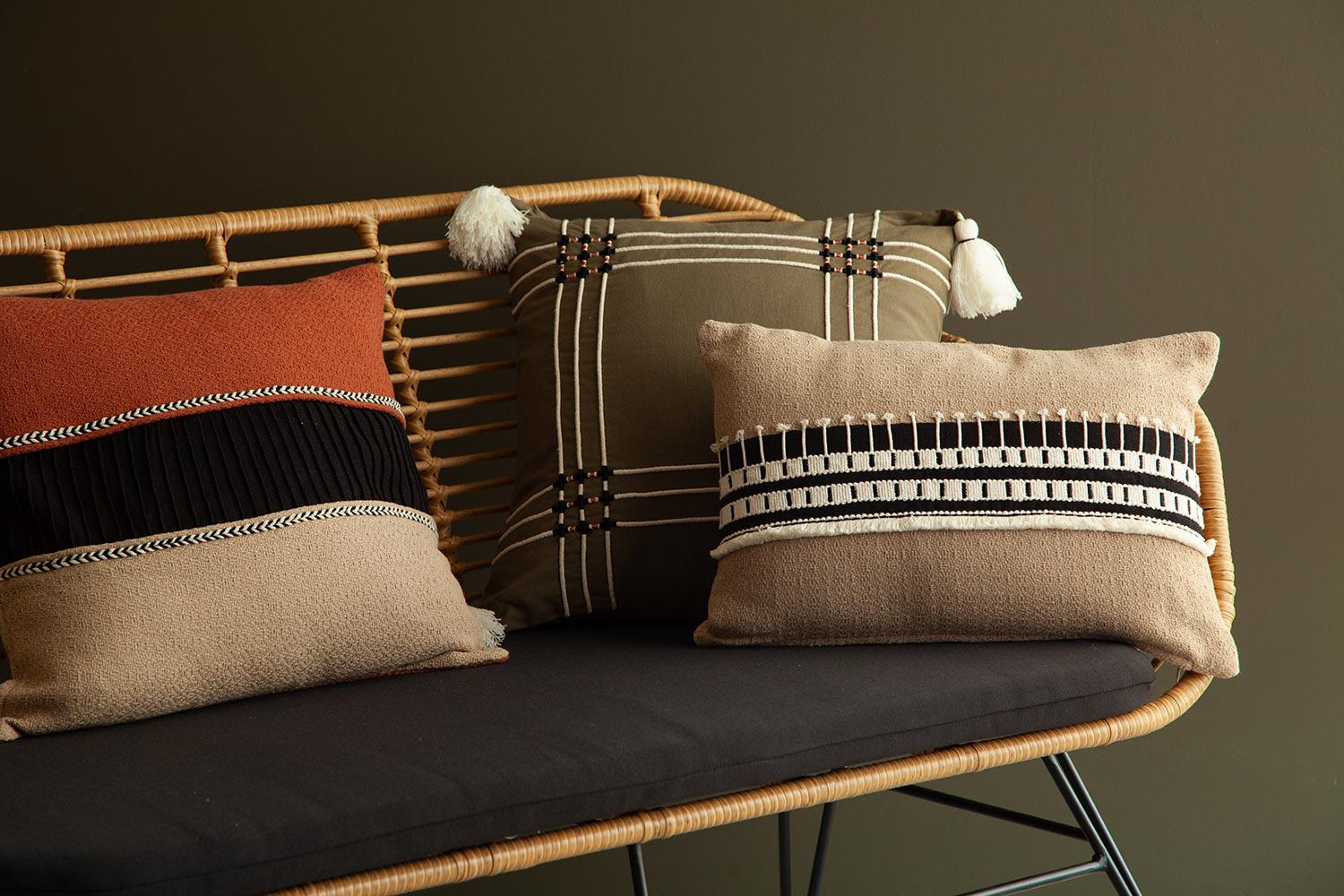 В коллекцию Ethnic вошел декоративный текстиль: ковры, чехлы подушки. Стильные аксессуары в сдержанных тонах дополнены объемным орнаментом с этническими мотивами.