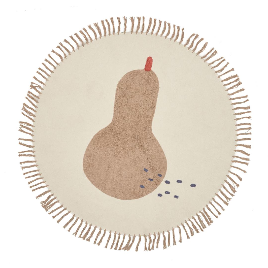 Ковер Tamya от фабрики La Forma (ex Julia Grup) – для развития вашего малыша и уюта в детской комнате. Ковер Tamya разработан командой Kave Home, чтобы поощрять творчество вашего малыша и помогать ему открывать для себя натуральные продукты. Изучение фруктов и цветов еще никогда не было таким увлекательным – заманчивый принт и бахрома помогут создать обстановку, чтобы маленькие фантазии разыгрались. Ковер круглый, выполнен из 100% хлопка, благодаря чему не вызывает аллергических реакций, экологичен. Фактура изделия в рубчик. Ковер светло-бежевого цвета, с набивным принтом в виде груши. Ковер окантован бахромой длиной 5 см. Ковер допускается стирать в машинке. Его запрещено отбеливать, чистить абразивными веществами. Размеры изделия: ширина – 120 см, высота – 120 см, толщина – 1 см. Вес – 1,32. В коллекцию предметов интерьера для детской комнаты также включены гобелены с изображением яблока и клубники. Изделие предназначено только для домашнего использования.