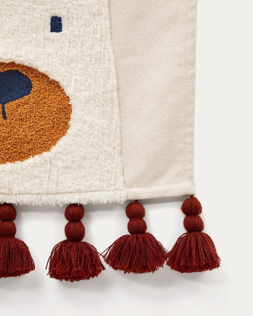 Ковер La Forma (ех Julia Grup) Zelda Гобелен белый хлопок с мишкой и терракотовыми кистями 40 х 40 см арт. 177875