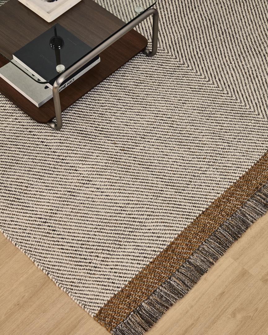 Этот шерстяной ковёр выделяется жаккардовым узором «ёлочка», который добавляет ему динамики и фактуры. Изготовленный из тщательно подобранной шерстяной смеси, он дарит ощущение комфорта и тёплый оттенок, преображающий атмосферу. Каждый ковёр соткан вручную, что делает его эксклюзивным изделием с небольшими вариациями, которые подчёркивают его ручную работу. В течение первых нескольких месяцев использования ковёр может линять, что является естественным свойством шерсти.