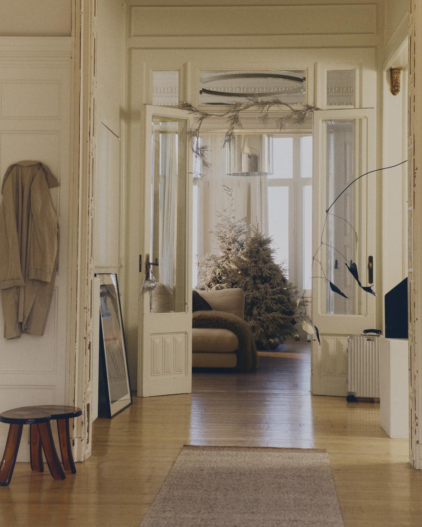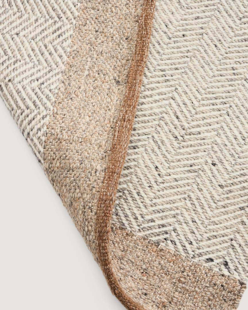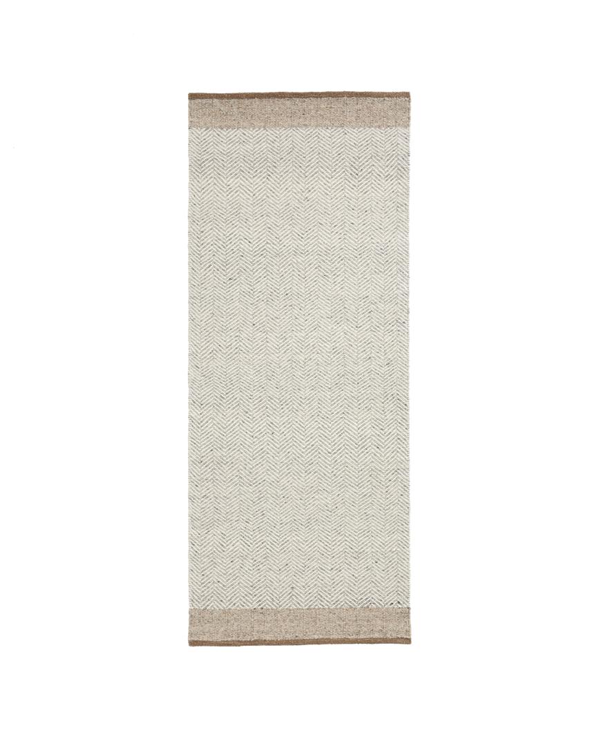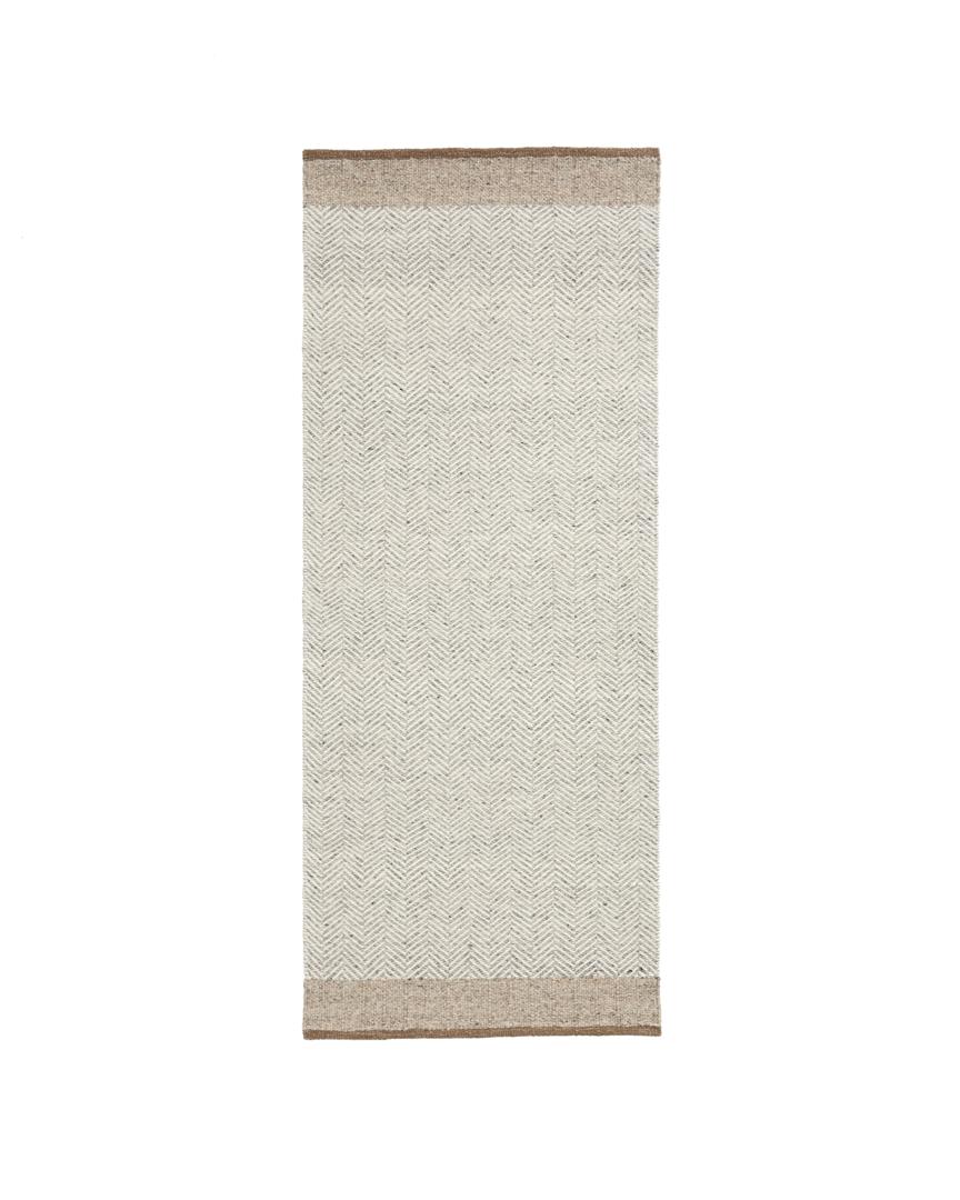 тот ковёр выделяется жаккардовым узором «ёлочка», который добавит динамичности и элегантности любому коридору. Изготовленный из тщательно подобранной шерстяной смеси, он обладает мягкой и тёплой текстурой, идеально подходящей для комфорта ног, а также изысканными бежевыми тонами, которые легко вписываются в интерьеры разных помещений. Каждый ковёр соткан вручную, что обеспечивает эксклюзивную отделку ручной работы, а небольшие вариации подчёркивают его аутентичность.