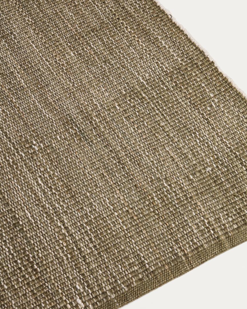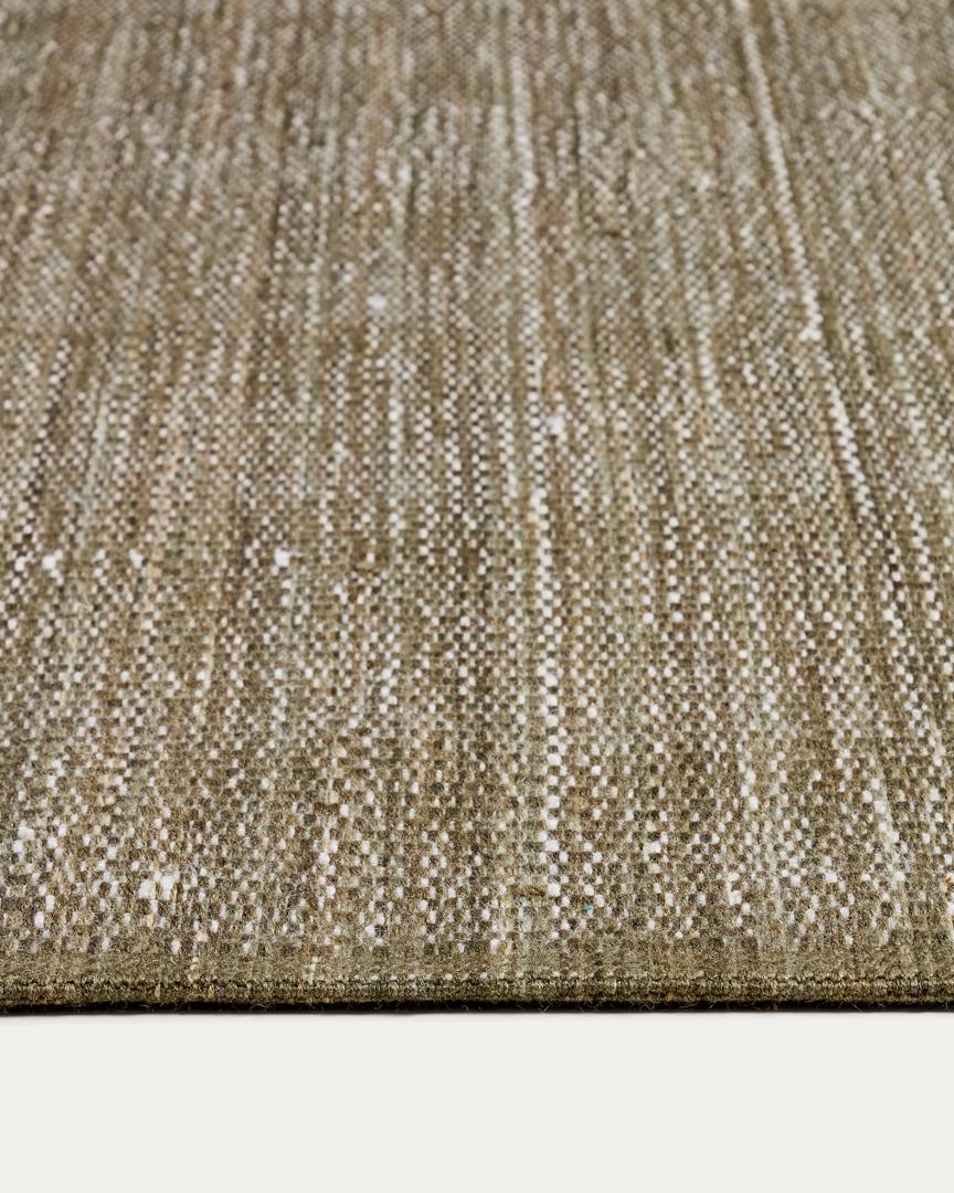 Ковер Tirla изготовлен из 100% переработанных ПЭТ-волокон, полученных из переработанных бутылок, что обеспечивает прочность и практичность без ущерба для мягкой и приятной текстуры. Он легко чистится и устойчив к воздействию внешних температур, обеспечивая долговечность и комфорт при ежедневном использовании. Поскольку ковер соткан вручную, каждый экземпляр может иметь незначительные вариации, отражающие его уникальный характер.
