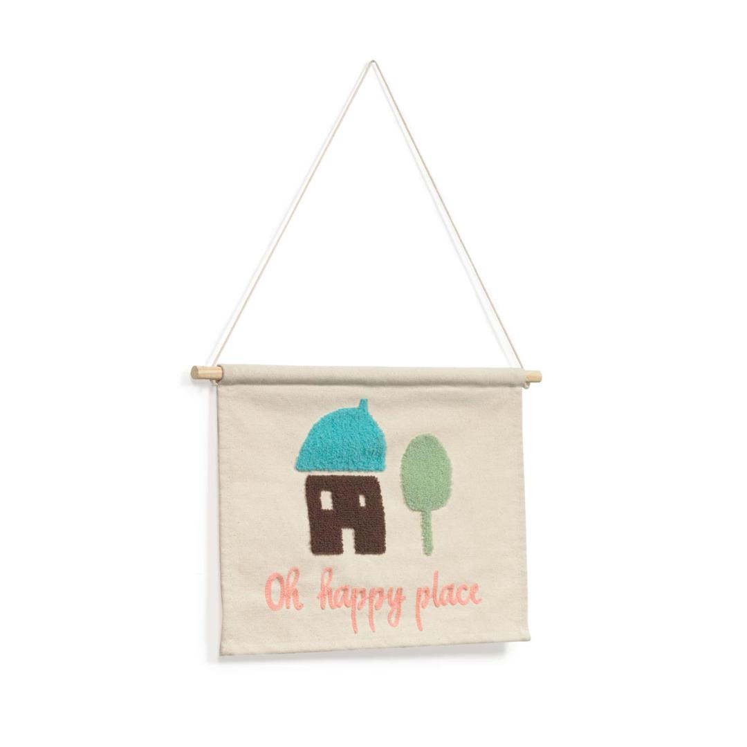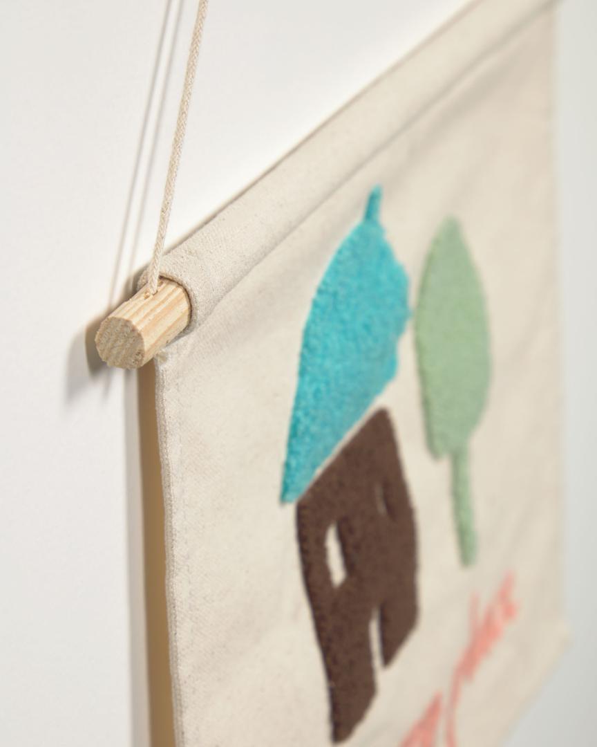 Гобелен Leshy от фабрики La Forma (ex Julia Grup) – милый лесной домик для детских фантазий. Гобелен Leshy сделан, чтобы создавать ощущения. Помимо добавления красочного акцента, картина отличается различными текстурами, которые приятны на ощупь и развивают чувства. А простой и незатейливый домик – понятное изображение для каждого малыша. Гобелен прямоугольной формы, сшит из 100% хлопка светло-бежевого цвета. Сама картинка имеет набивные и печатные элементы, для создания которых были использованы цветные акриловые нити и краски. Эти материалы не вызывают аллергических реакций, не содержат токсинов. Для придания формы, в гобелен вставлена деревянная перекладина. Подвешивается изделие за хлопковый шнурок. Гобелен не рекомендуется стирать в машинке. Можно чистить мягкими моющими средствами. Отбеливание, агрессивная чистка запрещены. Размер: ширина – 35 см, высота – 25 см, глубина – 1 см. В коллекцию Leshy входят также чехлы для подушек, три настенные картины.