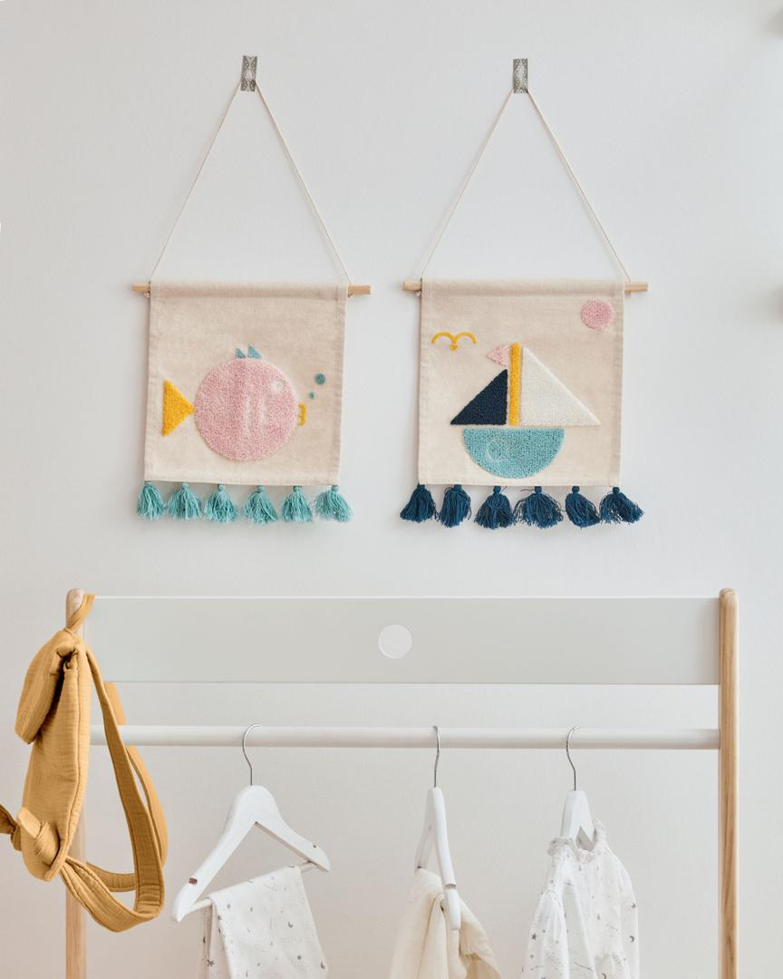 Гобелены Delmare от фабрики La Forma (ex Julia Grup) – яркое украшение на стену для детской комнаты. Коллекция гобеленов Delmare станет отличным дополнением к интерьеру в детской спальне. Яркий цветовой акцент, различные текстуры, интересные изображения – все это развивает воображение ребенка, помогает изучать внешний мир. Гобелены отличаются несравненной мягкостью и простотой в уходе. Гобелены представлены двух видов – с изображением рыбки и кораблика. Рисунки набивные, из ниток смесового состава (50% – хлопок, 50% – акрил). Основное полотно хлопковое, в натуральном цвете. Для подвеса к стене предусмотрен шнурок и деревянная перекладина. Гобелены не вызывают аллергии, не токсичны. Допускается стирка с использованием мягких моющих средств. Отбеливание, агрессивная чистка запрещены. Размер: ширина – 25 см, высота – 25 см. В коллекцию Delmare также входит подушка в форме рыбки.
