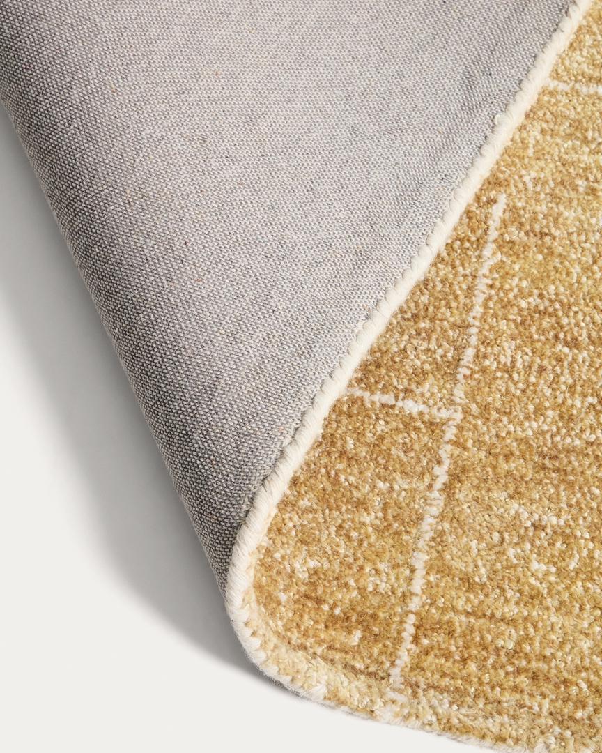 Ковер Eloda сочетает в себе шерсть и вискозу, создавая гармоничное сочетание тепла и свежести. Благодаря свойствам смеси нитей, он сохраняет приятные тактильные ощущения даже в теплые месяцы года. Каждый ковер соткан вручную, поэтому каждый экземпляр имеет небольшие вариации, отражающие мастерство ручной работы и делающие каждое изделие уникальным. Горчичный оттенок добавляет теплый, современный оттенок, который легко впишется в нейтральные интерьеры или будет дополнен цветовыми акцентами.