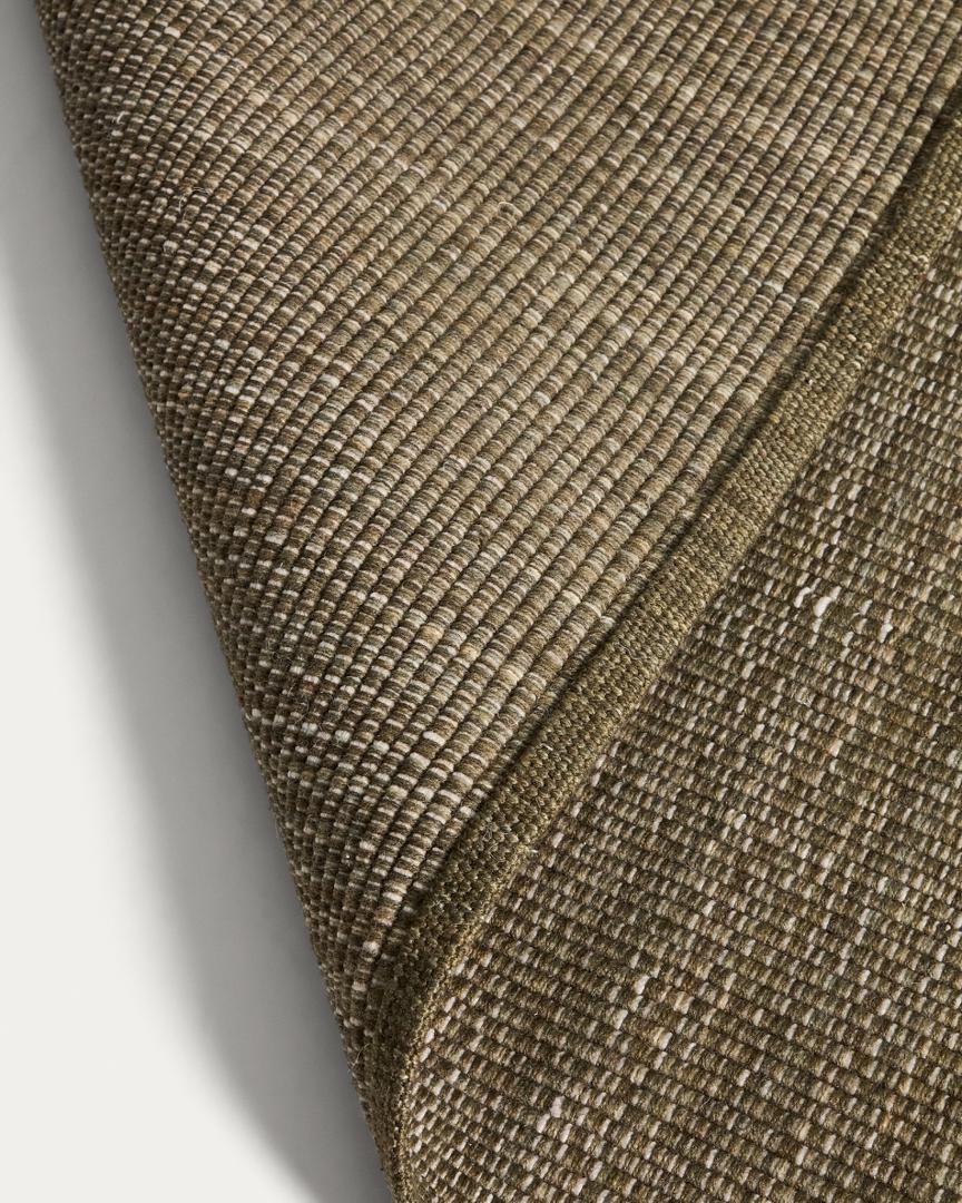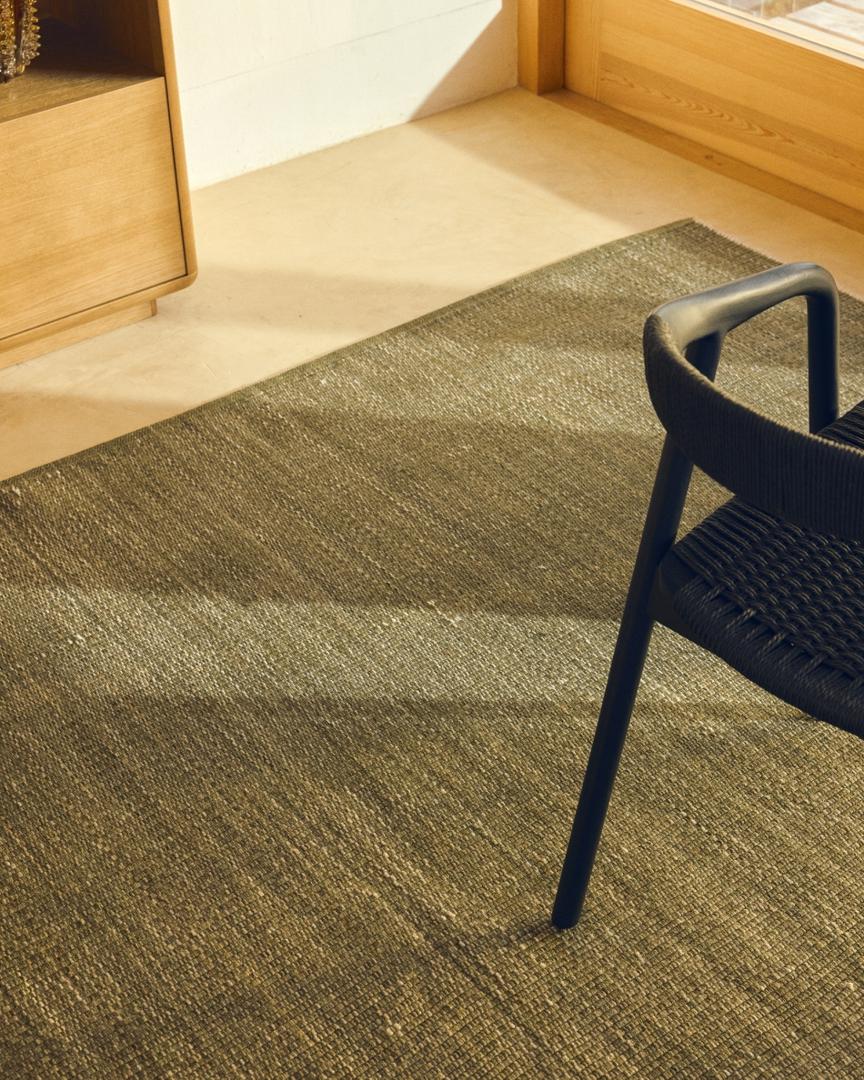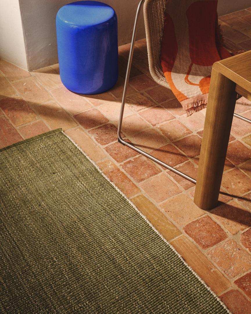 Ковер Tirla изготовлен из 100% переработанных ПЭТ-волокон, полученных из переработанных бутылок, что обеспечивает прочность и практичность без ущерба для мягкой и приятной текстуры. Он легко чистится и устойчив к воздействию внешних температур, обеспечивая долговечность и комфорт при ежедневном использовании. Поскольку ковер соткан вручную, каждый экземпляр может иметь незначительные вариации, отражающие его уникальный характер.