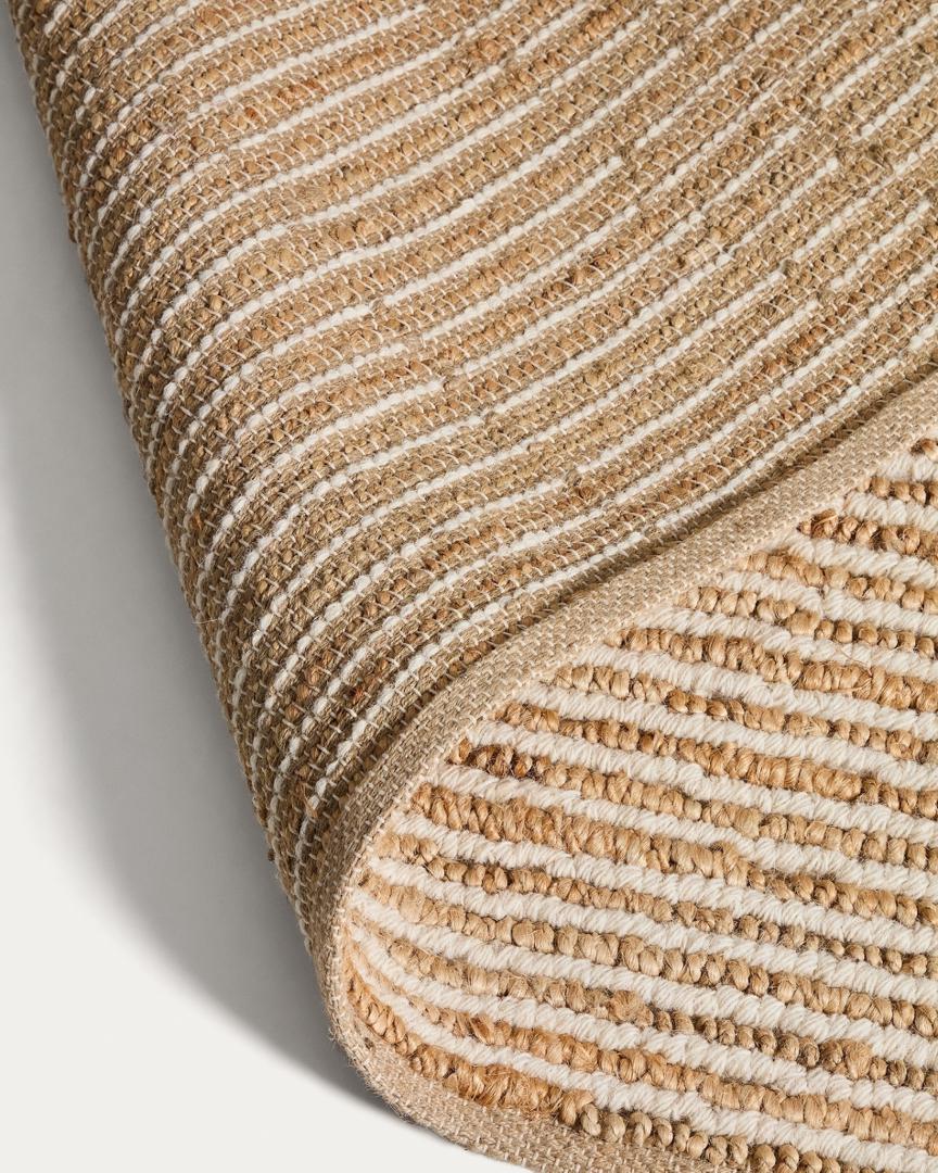 Ковер Derule сочетает в себе шерсть и джут, создавая текстуру и характер. Он соткан вручную, что обеспечивает плотную и солидную ткань. Отделка отражает естественный вид материалов и подчеркивает неровности, присущие ручному ткачеству. Ручная работа и использование натуральной пряжи делают каждый ковер эксклюзивным, а небольшие вариации в плетении придают ему аутентичность. Он легко вписывается в различные интерьеры, всегда сохраняя простой и ухоженный вид.