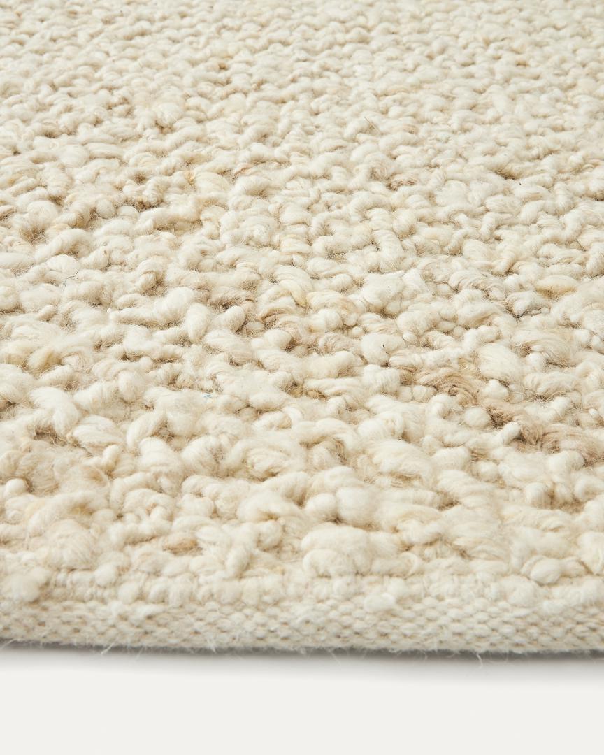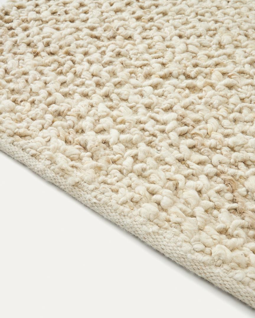 Ковер Miray от фабрики La Forma (ex Julia Grup) – натуральная шерсть для естественной мягкости. Ковер Miray наполнит вашу комнату уютом и добавит осязаемой мягкости. Созданный из натуральной шерсти практически белого цвета, он идеально впишется в интерьер любой комнаты. Произведения искусства можно найти там, где вы меньше всего их ожидаете. Теперь оно и на вашем полу! Ковер прямоугольной формы. Он соткан из натуральной овечьей шерсти, Цвет естественный, светло-бежевый. Край окантован шерстяной тесьмой. Изделие экологичное и натуральное, поэтому его можно использовать для детских комнат. Ковер нельзя стирать в машинке – только ручная деликатная чистка без использования отбеливателей и абразивов, или химчистка. Размеры: ширина – 160 см, длина – 230 см, высота – 1 см. Вес изделия – 9,84 кг. Ковер предназначен для помещений. При намокании требуется тщательно просушить.