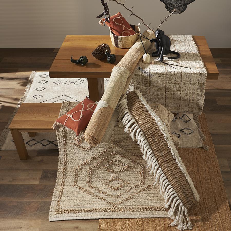 В коллекцию Ethnic вошел декоративный текстиль: ковры, чехлы подушки. Стильные аксессуары в сдержанных тонах дополнены объемным орнаментом с этническими мотивами.