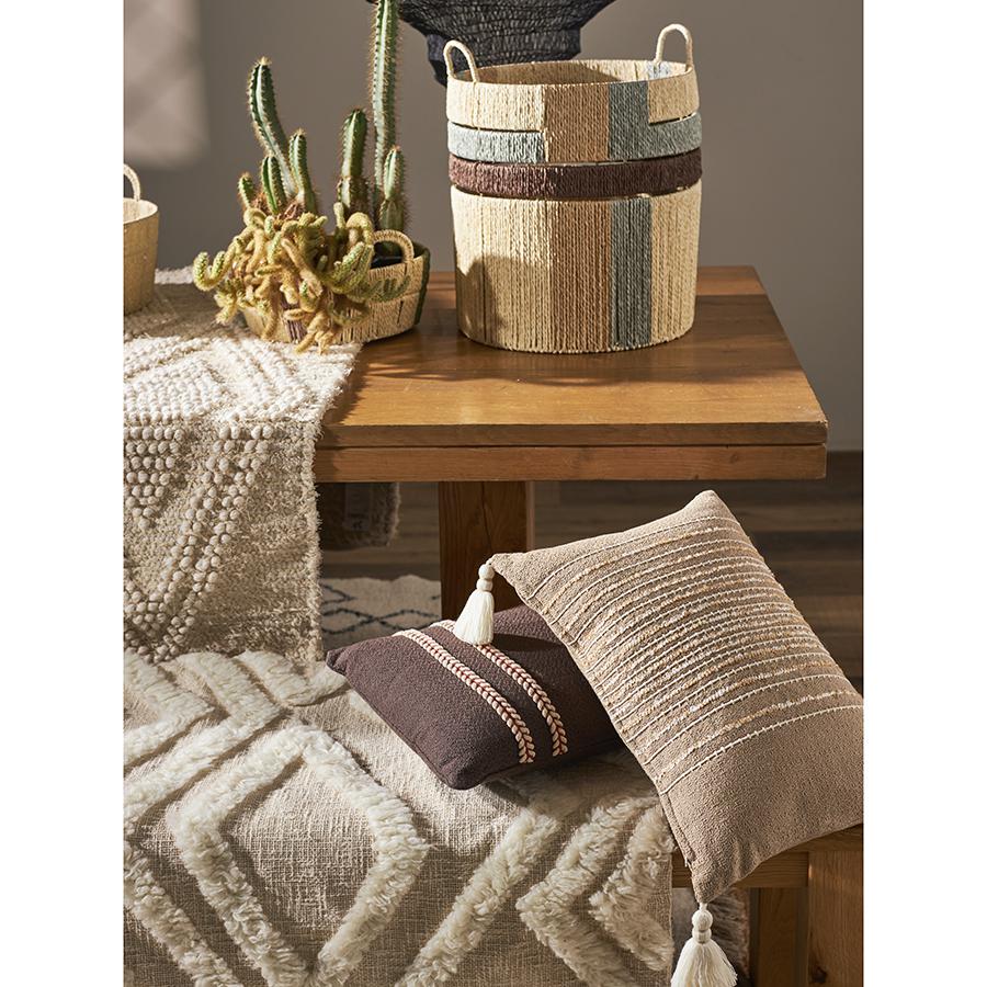 В коллекцию Ethnic вошел декоративный текстиль: ковры, чехлы подушки. Стильные аксессуары в сдержанных тонах дополнены объемным орнаментом с этническими мотивами.