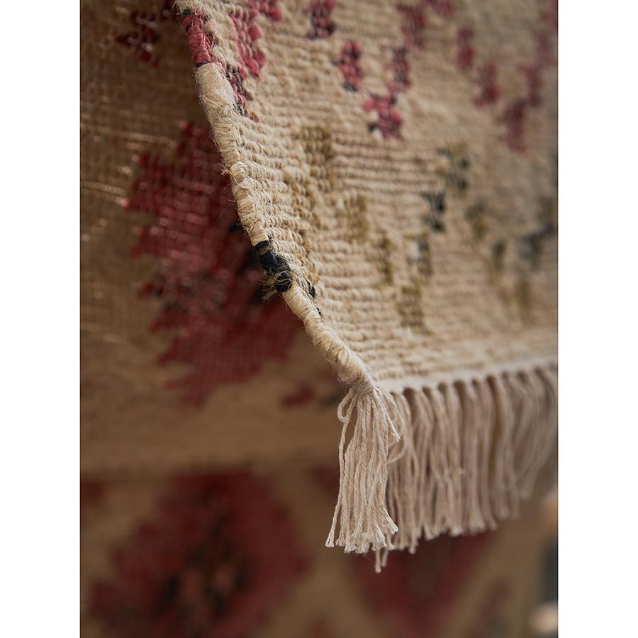 Ковер из джута и шерсти по мотивам башкирских орнаментов из коллекции Cultural Heritage позволит окунуться в мир традиций и станет ярким акцентом интерьера, притягивающим восхищенные взгляды. Каждая нить этого текстильного изделия хранит тайны старинных техник ручного ткачества, а колоритные узоры раскрывают богатство культурного наследия. Особенности и преимущества: - Ковер из джута с добавлением шерсти хорошо сохраняет тепло и обладает звукоизоляционными свойствами, обеспечивая в помещении комфортную атмосферу. - Натуральные материалы являются экологичными, не вызывают аллергию, отличаются естественной устойчивостью к износу, истиранию и выцветанию. - Шерсть способна поглощать влагу из воздуха и выделять ее в атмосферу, что способствует поддержанию оптимального уровня влажности в комнате. - Ковер с контрастным узором в этническом стиле привлекает внимание и может использоваться в качестве акцентного элемента. - Изделие представлено в нескольких размерах, что дает возможность выбрать наиболее подходящий вариант для каждого пространства. Фактические размеры ковра могут незначительно отличаться в пределах 3-5 см. Размеры изделия указаны без учета бахромы и декоративных элементов. Материал:70% джут, 30% шерсть. Размер: 160х230 см. Плотность: 1700 г/м2. Подложка: нет. ! Стирка запрещена ! ! Гладить запрещено ! Барабанная сушка запрещена ! Не отбеливать ! Сухая чистка запрещена ! Допускается ручная чистка пятен Рекомендуем незамедлительно удалять любые загрязнения. Используйте бумажные салфетки или ткань с использованием мыла или мягкого специализированного средства. Регулярно чистите ковер пылесосом. Не используйте турбощетку или щетку с жестким ворсом. Если появилась зацепка, не вытягивайте нити из ковра, чтобы их удалить используйте ножницы. Стелите ковер на подложку, чтобы продлить срок его службы и защитить напольное покрытие. Небольшое количество ворса может выпадать, это нормально для ковров из натуральных материалов. Обращаем внимание, что острые предметы, открытый огонь, теплая поверхность и чрезмерная влажность могут испортить внешний вид и характеристики изделия.