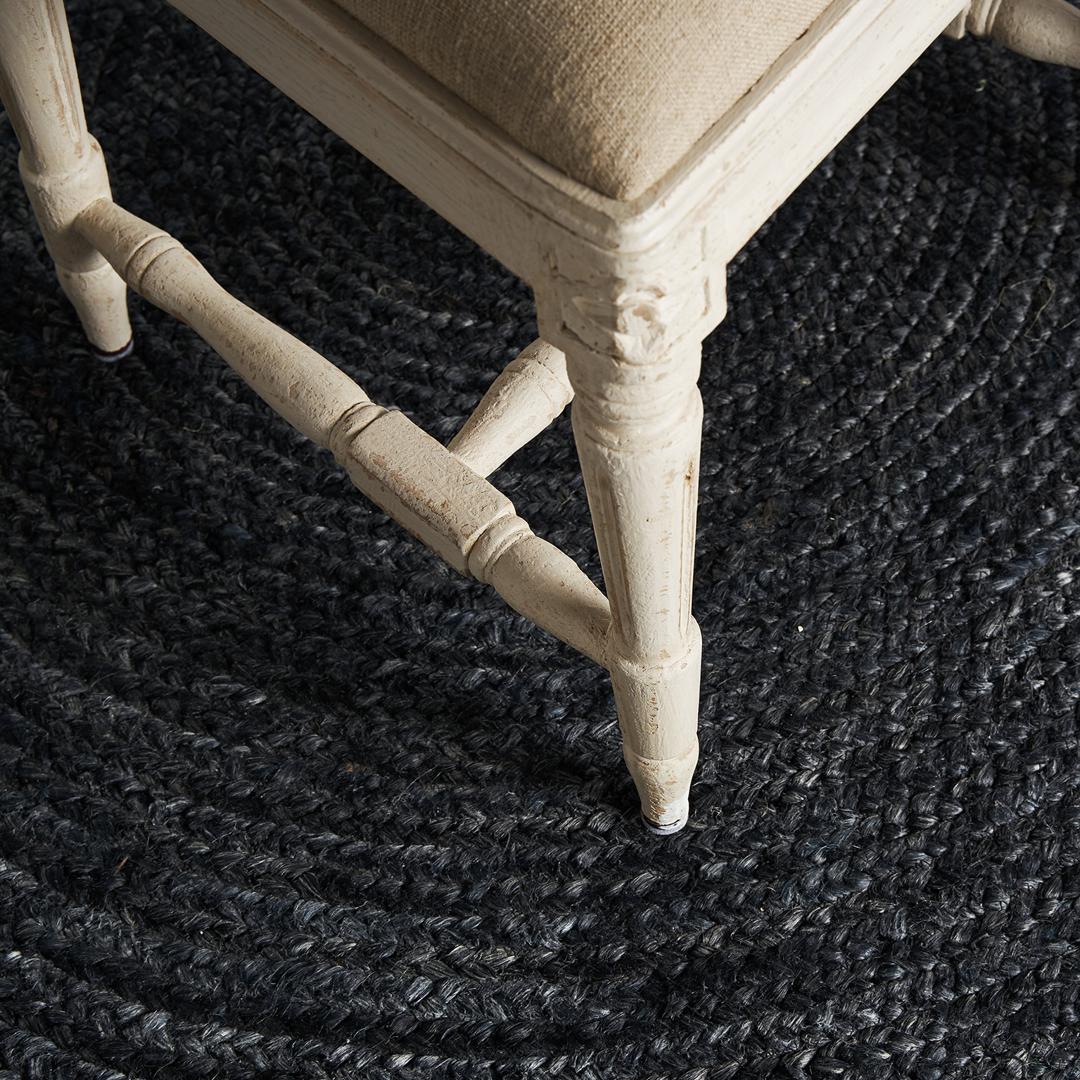 Ковер круглый KISAI, окрашенный в черный цвет, современный стиль. Изготовлен из джута. Ширина: 158 см, Глубина: 158 см, Высота: 1 см
