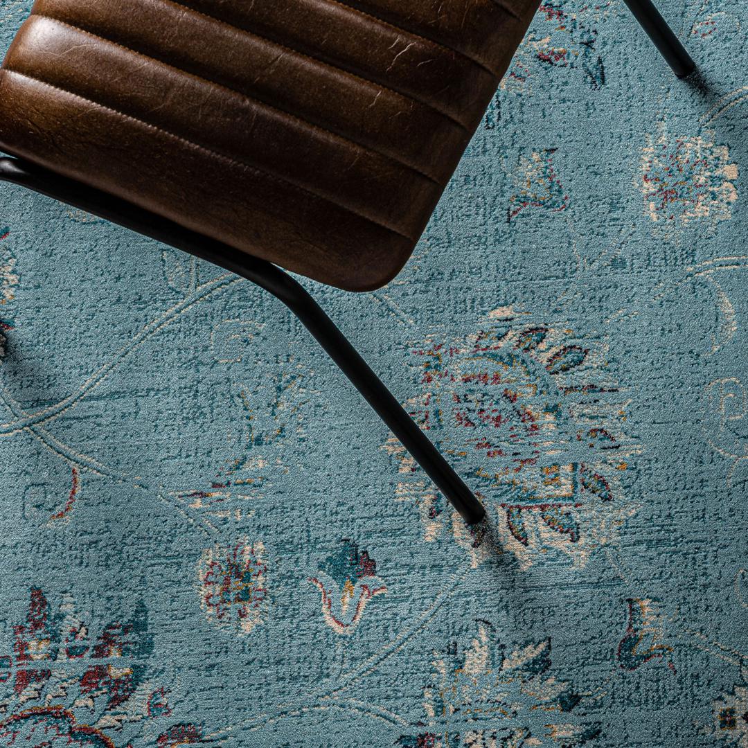 Элегантность и эксклюзивность исходят от этого ковра из шенилла и вискозы в бирюзово-голубых тонах. Яркий, но гармоничный внешний вид делает ковер впечатляющим в комнате и вдохновляет дом яркими и контрастными стилями.