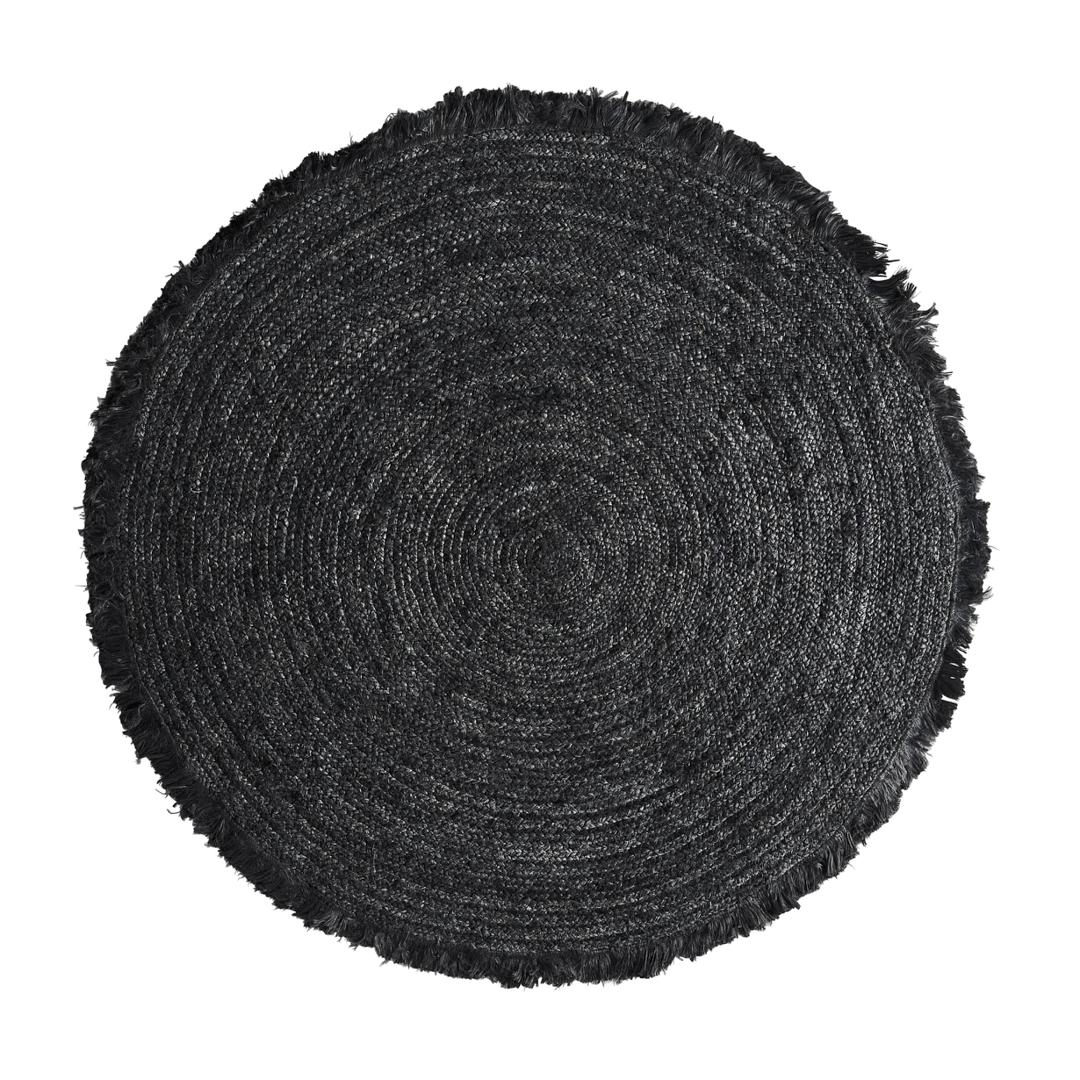 Ковер круглый KISAI, окрашенный в черный цвет, современный стиль. Изготовлен из джута. Ширина: 158 см, Глубина: 158 см, Высота: 1 см