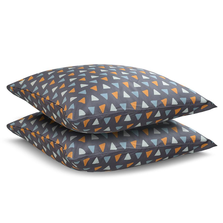 Комплект из двух наволочек с геометричным принтом Triangles в сочетании с насыщенным темно-серым цветом станет прекрасным дизайнерским акцентом в интерьере любой спальни. Гладкий, приятный на ощупь материал плотностью 210 ТС отличается особым способом пряжи – нити переплетаются в скрученном виде, что придает ткани дополнительную прочность. В комплекте 2 наволочки 70х70 см с системой закрытия клапан. Упаковка – брендированная крафтовая коробка. ! Максимальная температура стирки 60° C ! Гладить при максимальной температуре 150° C ! Сушить горизонтально ! Не отбеливать ! Возможна сухая чистка