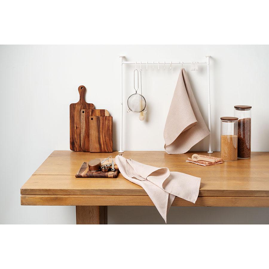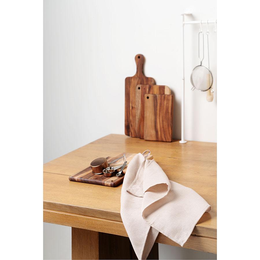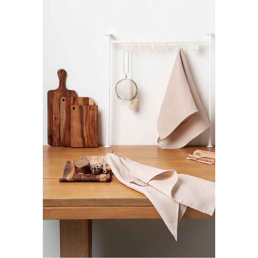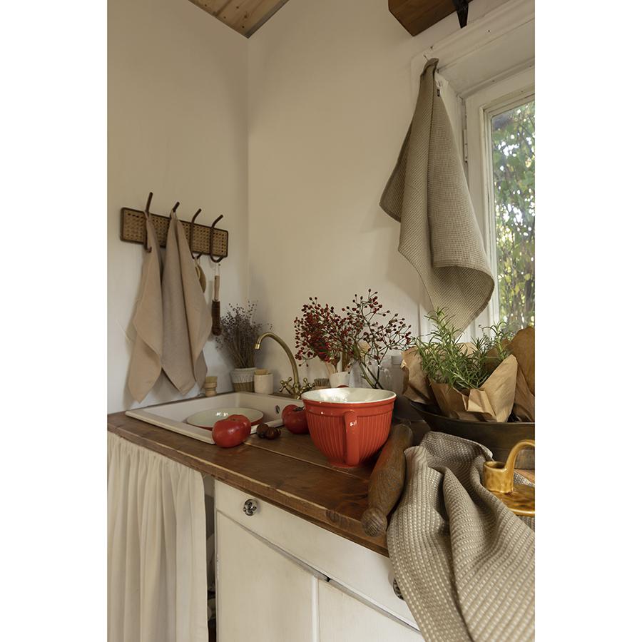 Набор из двух вафельных полотенец бежевого цвета для кухни из коллекции Essential – отличный вариант для ценителей спокойных природных оттенков. Изделия изготовлены из умягченного льна, который хорошо впитывает влагу и быстро сохнет. Как известно, лен не только прекрасно смотрится в интерьере, но и предотвращает развитие бактерий, что особенно актуально для кухни и столовой. Полотенце можно повесить на крючок, благодаря удобной петельке. Данная линейка товаров представлена в трех цветах: сером, бежевом и темно-синем. Кухонные полотенца упакованы в маленькую крафтовую коробку, поэтому могут стать приятным подарком как себе, так и близкому человеку. Состав: 100% лен. Размер: 50х70 см. Плотность ткани: 280 г/м2. ! Максимальная температура стирки 30° C ! Гладить при максимальной температуре 110° C ! Возможна барабанная сушка при низкой температуре ! Не отбеливать ! Возможна сухая чистка