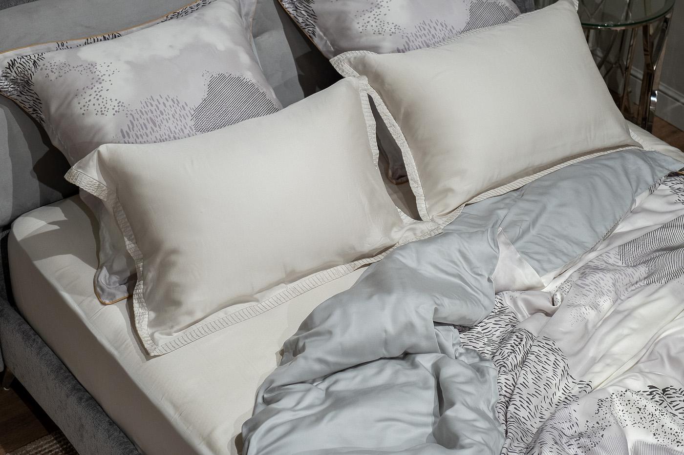 description-full - Комплект наволочек с клапаном Нувола сшит из 100% ткани тенсель. Пошив в коллекции представлен одним из самых распространенных способов украсить постельное белье. По периметру наволочки и пододеяльника делается отстрочка, формирующая бордюр шириной 5 см. Наволочки с контрастным кантом и ушками, имеют название-Оксфордские. Ткань изготовлена из экологически чистого волокна лиоцелл, полученного из древесины эвкалипта. Ткань мягкая, немного блестящая, как шелк, но при этом – не скользкая, теплая, как шерсть, легкая, как хлопок. Она отлично пропускает воздух и впитывает влагу, гипоаллергенна. Уход: Деликатная машинная стирка при температуре не выше 30 градусов. При использовании утюга устанавливать режим «шелк» и гладить с изнаночной стороны. Стирать в стиральной машине можно, но только в режиме деликатной стирки и отжима. Не рекомендуется использовать стиральный порошок, только жидкие моющие средства. Полоскание возможно только в холодной воде.