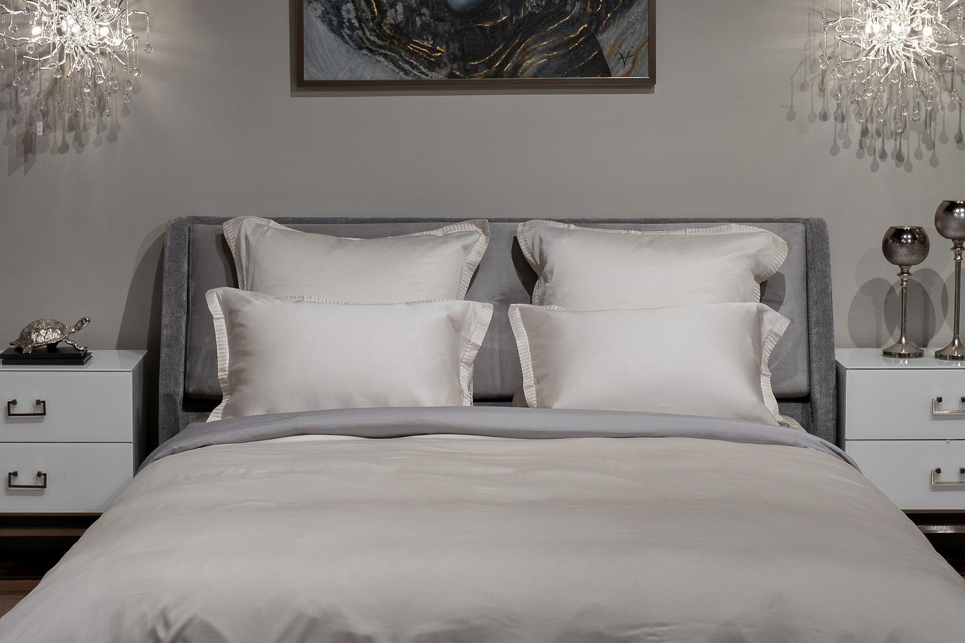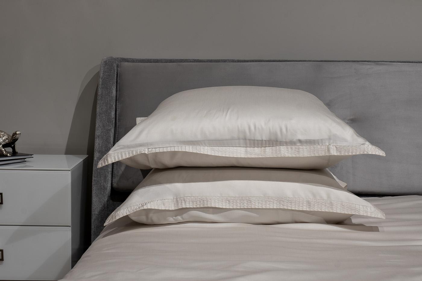 Комплект наволочек с клапаном сшит из 100% ткани тенсель. По периметру наволочки уникальная вышивка в цвет ткани, формирующая бордюр шириной 3 см. Ткань изготовлена из экологически чистого волокна лиоцелл, полученного из древесины эвкалипта. Ткань мягка...