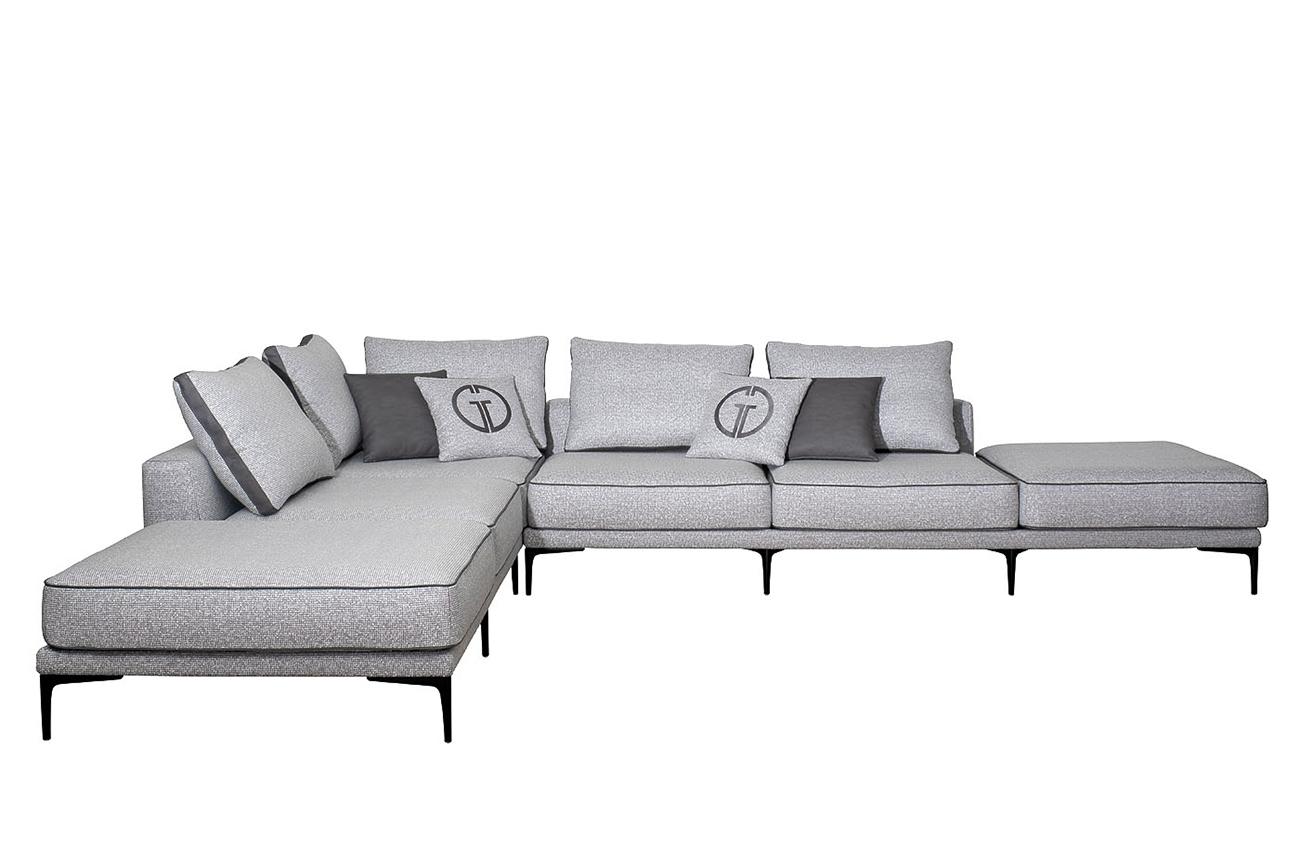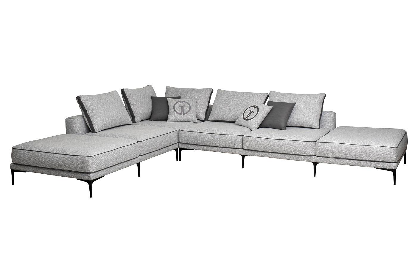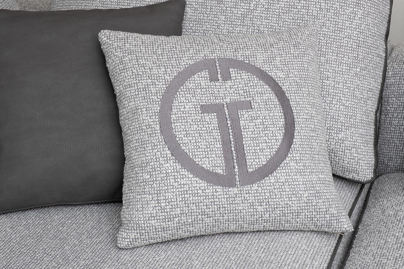 description-full - Комплект №44 модульного дивана TESORO угловой В состав комплекта входит: модуль угловой правый DR+P - 1шт в ткани Santo1400-SVSER с кантом иск.кожа NEVADA 93; модуль прямой DO+P - 1шт в ткани Santo1400-SVSER с кантом иск.кожа NEVADA 93; подушки спинки 5 шт - в ткани Santo1400-SVSER с бурлетом иск.кожа NEVADA 93; декоративные подушки 45*45см 2 шт в иск.коже NEVADA 93; декоративные подушки 45*45см с вышивкой GD эмблема - 2шт в ткани Santo1400-SVSER; Металлические опоры 180мм - черные. Все модули могут скрепляться между собой в модульный диван , а также использоваться как самостоятельное изделие. Декоративные подушки в стандартный комплект дивана не входят, необходимо заказывать дополнительно. Габариты модульного дивана: длина - 380см; ширина- 295см; глубина - 110см,высота- 900см