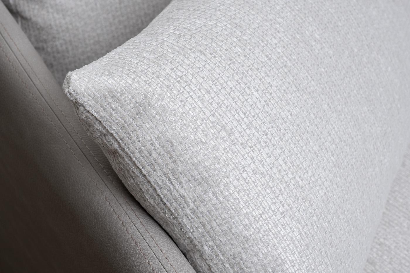 Комплект мебели Santiago №2. В остав комплекта входит: Диван-кушетка Santiago-1шт, Двухместный диван Santiago с левым подлокотником. Комплект выполнен в ткани из коллекции Garda Decor- рогожка Koza3803-SVSER, кант- иск.кожа Nevada91. Металлические опоры,...
