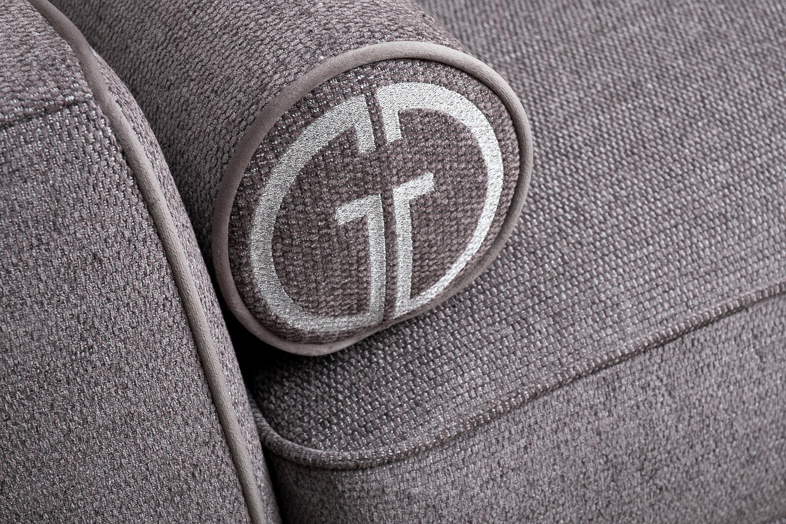 Трехместный диван без механизма трансформации с кантом. Диван на фото выполнен в тканях из коллекции Garda Decor - Натур-Кор(Natur-Kor), кант Колтон(Colton)032. В комплект дивана входят 3 подушки спинки и 2 декоративных валика с эмблемой, цвет серебро. Р...