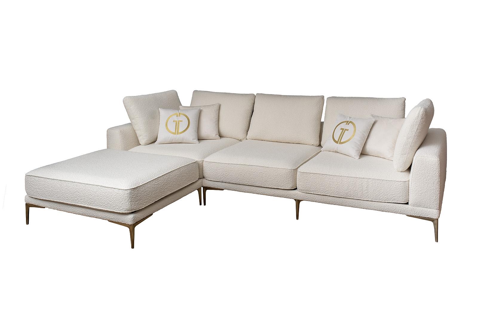 Комплект мебели №53 модульный Диван Тесоро(Tesoro) (левый угол). В состав комплекта входит: модуль угловой левый DR-1шт, модуль угловой правый KL+P- 1шт. Комплект выполнен в ткани из коллекции Garda Decor- букле Орсо-Экрю(Orso-Ecru). В состав комплекта вх...