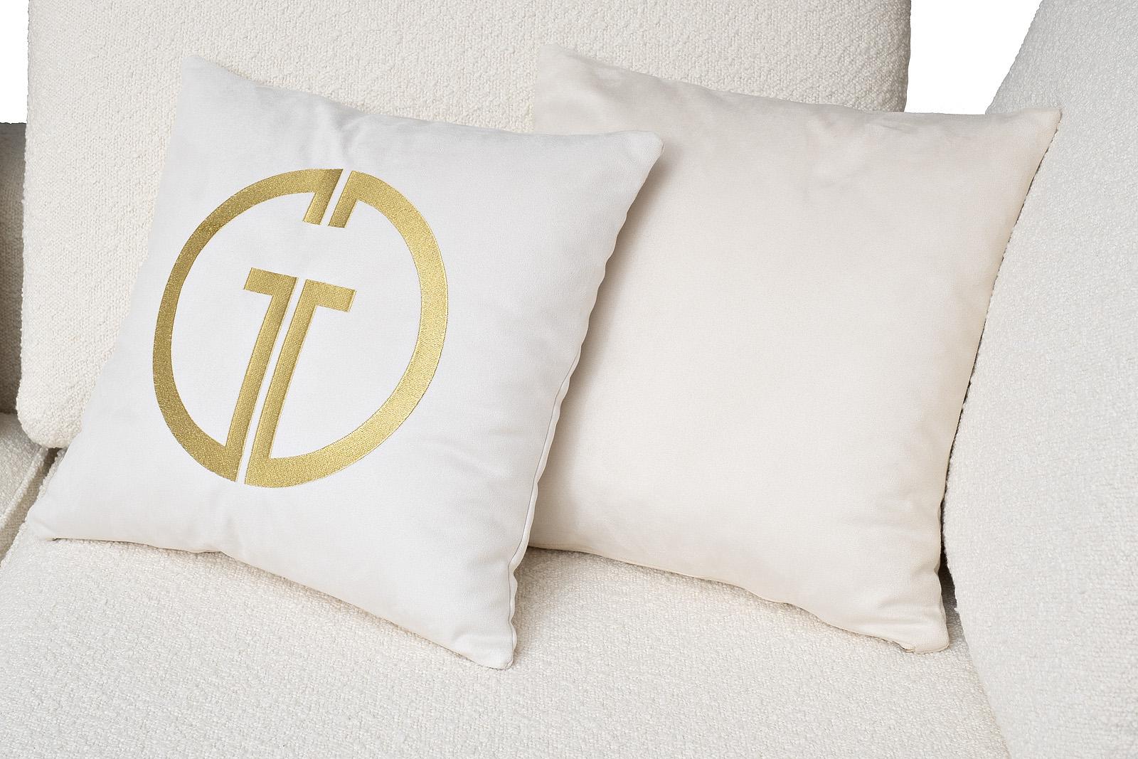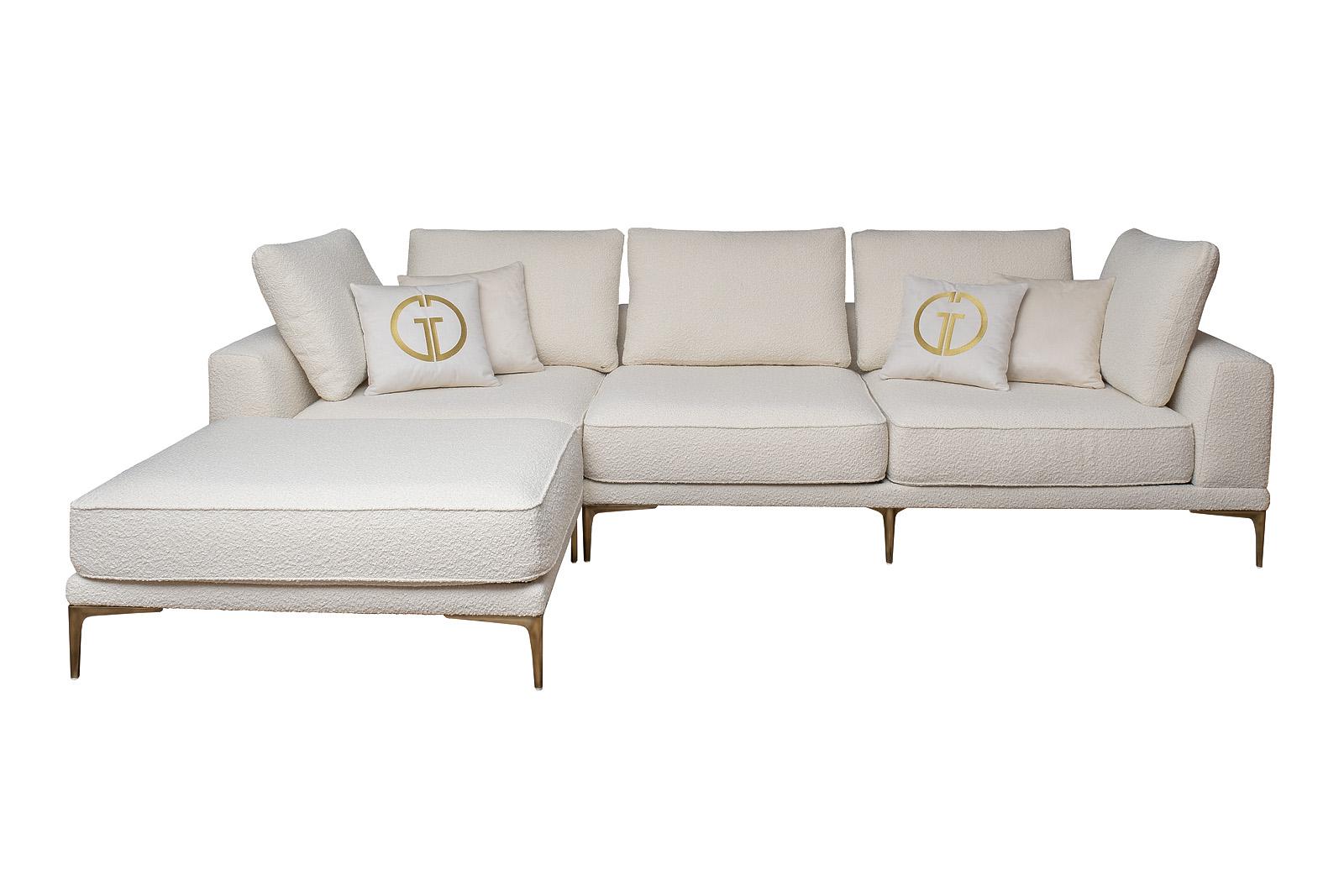 description-full - Комплект мебели №53 модульный Диван Тесоро(Tesoro) (левый угол). В состав комплекта входит: модуль угловой левый DR-1шт, модуль угловой правый KL+P- 1шт. Комплект выполнен в ткани из коллекции Garda Decor- букле Орсо-Экрю(Orso-Ecru). В состав комплекта входят декоративные подушки: 45*45см в ткани Атмосфера(Atmosphera)010-2шт, 45*45см в ткани Атмосфера(Atmosphera)000-2шт с вышивкой эмблема в цвет золото. Металлические опоры 18см, цвет бронза. Габариты комплекта: ширина- 3100мм, глубина-2000мм, высота- 900мм. Глубина сиденья- 750мм, высота посадочного места- 440мм.
