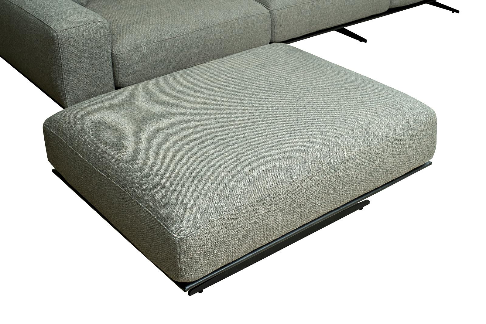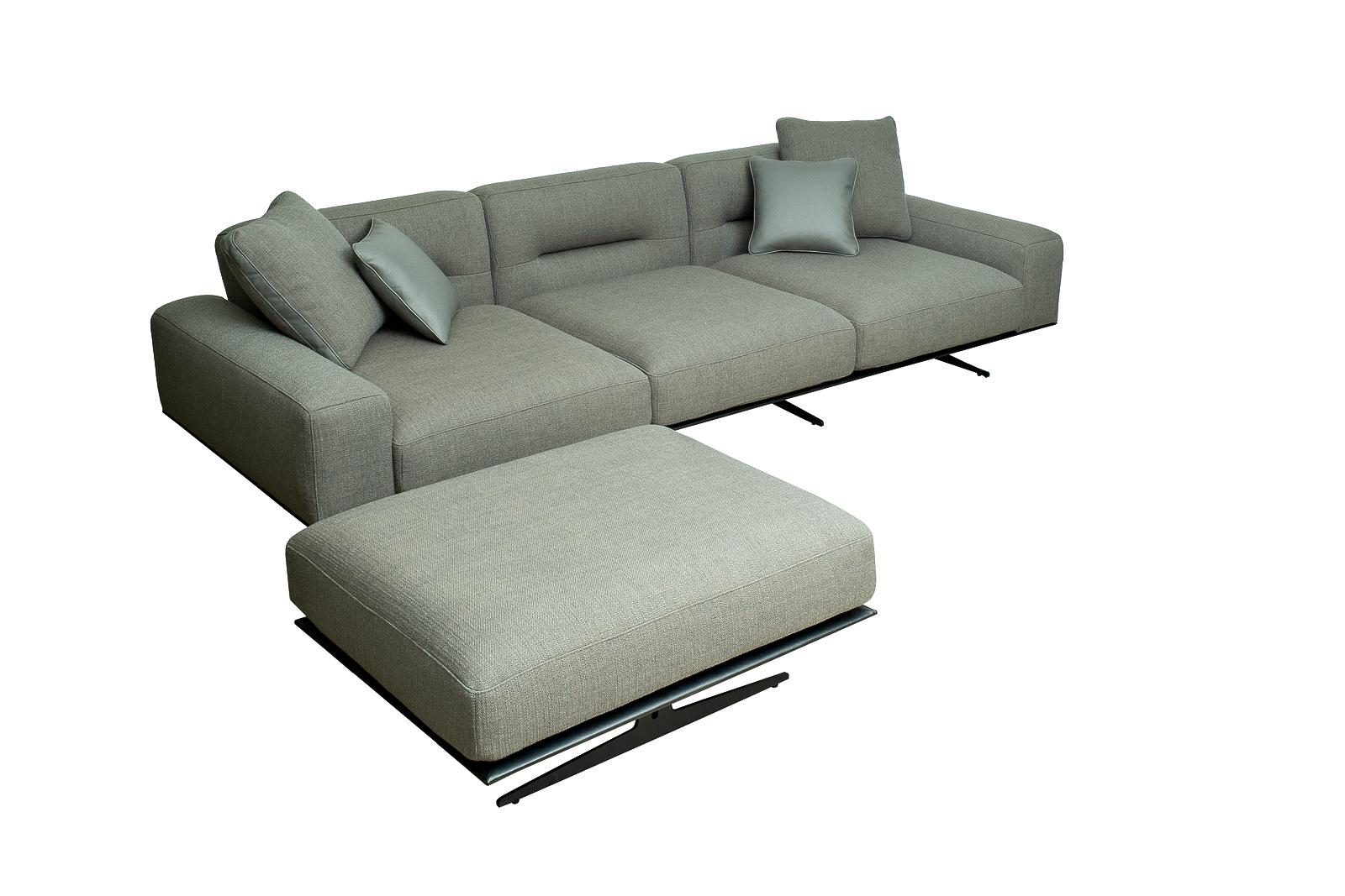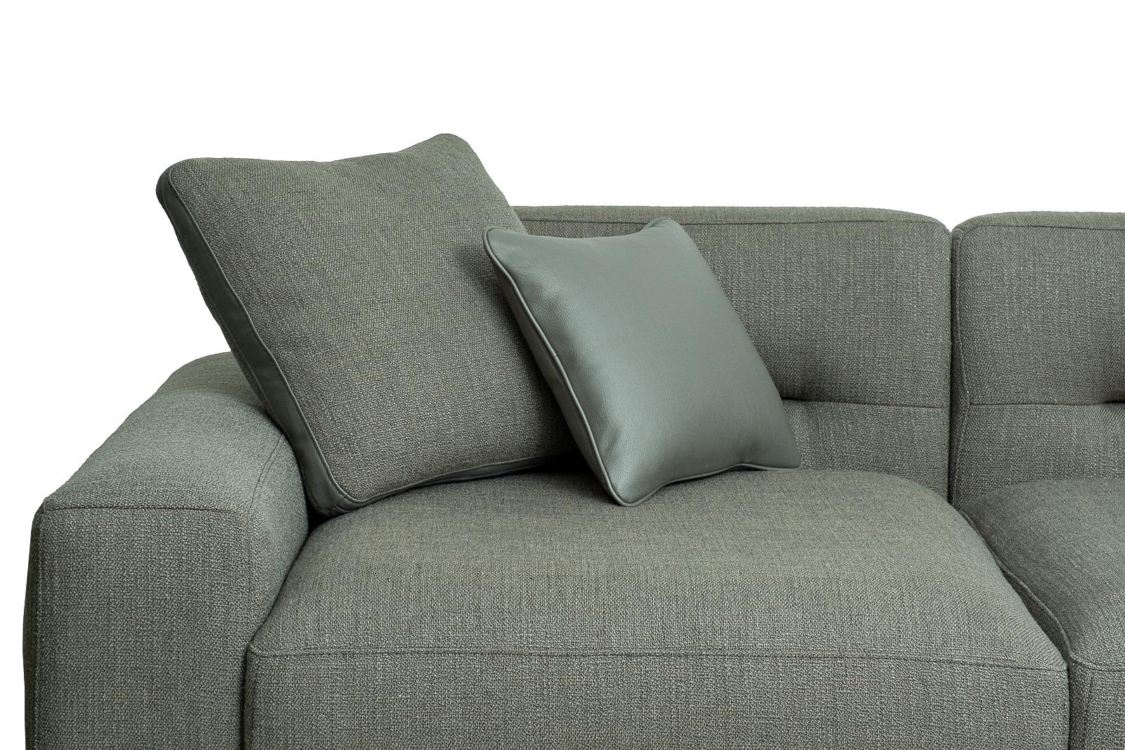 description-full - Комплект мебели №14 диван модульный Порто(Porto) (левый угол). В состав комплекта входит: основание трехместное-1шт, выполнена в иск.коже Магия(Magic)01; подлокотник низкий-2шт; сиденье с высокой спинкой-3шт; отдельностоящий пуф- 1шт. Основная ткань комплекта- рогожка Нортон-Графит(Norton-Graphite) из коллекции тканей Garda Decor. В сотав комплекта входят декоративные подушки: 50*50см с бурлетом 2шт- в ткани Нортон-Графит(Norton-Graphite), бурлет- иск.кожа Энзо(Enzo)697; 40*40см с кантом 2шт- в иск.коже Энзо(Enzo)697. Металлические опоры- 170см, цвет черный. Габариты комплекта: ширина-294см, глубина- 194см, высота-75см. Глубина пуфа- 107см, глубина посадочного места- 82см, высота посадочного места- 45см