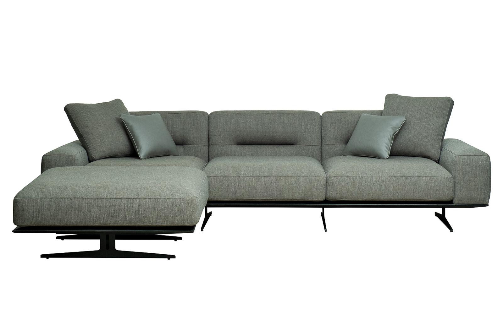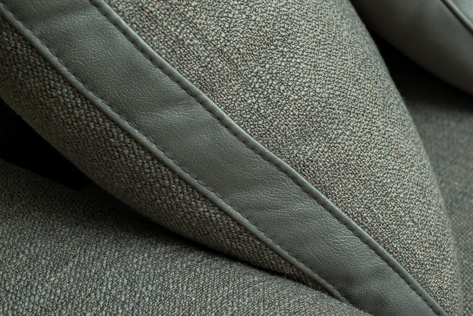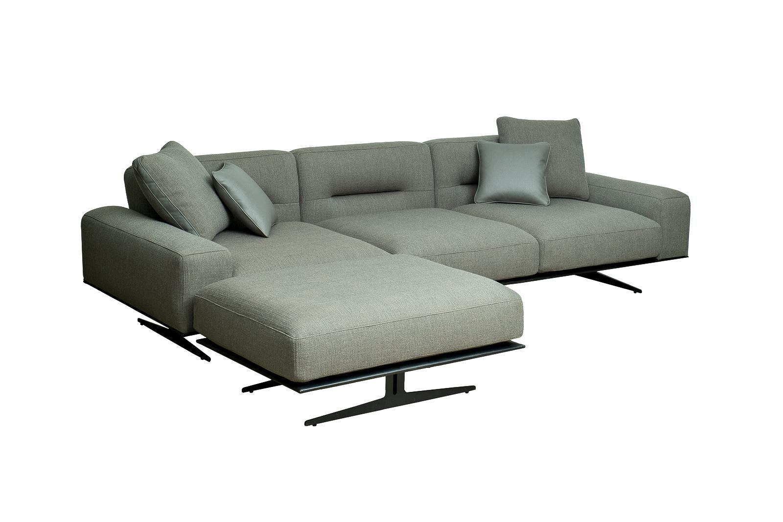 description-full - Комплект мебели №14 диван модульный Порто(Porto) (левый угол). В состав комплекта входит: основание трехместное-1шт, выполнена в иск.коже Магия(Magic)01; подлокотник низкий-2шт; сиденье с высокой спинкой-3шт; отдельностоящий пуф- 1шт. Основная ткань комплекта- рогожка Нортон-Графит(Norton-Graphite) из коллекции тканей Garda Decor. В сотав комплекта входят декоративные подушки: 50*50см с бурлетом 2шт- в ткани Нортон-Графит(Norton-Graphite), бурлет- иск.кожа Энзо(Enzo)697; 40*40см с кантом 2шт- в иск.коже Энзо(Enzo)697. Металлические опоры- 170см, цвет черный. Габариты комплекта: ширина-294см, глубина- 194см, высота-75см. Глубина пуфа- 107см, глубина посадочного места- 82см, высота посадочного места- 45см