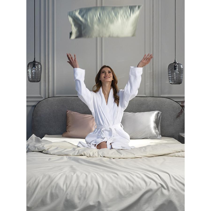 Наволочка из натурального шелка мятного цвета из коллекции Essential украсит любую спальню и оставит ощущение нежности на вашей коже. Шелковая ткань меньше склонна к появлению заломов, что позволяет изделию сохранять эстетичный вид. Материал хорошо впитывает влагу и обеспечивает оптимальную воздухопроницаемость, создавая условия для комфортного и здорового сна. Его невероятно мягкая и гладкая фактура предотвращает появление морщин на лице и снижает риск образования спутанных узелков на волосах. Кроме того, шелк является гипоаллергенным, что делает его отличным выбором для людей с чувствительной кожей и аллергиями. Состав: 100% натуральный шелк. Плотность шелка: 19 момми. Размер: 50х70 см. ! Ручная стирка при максимальной температуре 30° C ! Гладить при максимальной температуре 110° C ! Сушить вертикально в тени ! Не отбеливать ! Сухая чистка запрещена