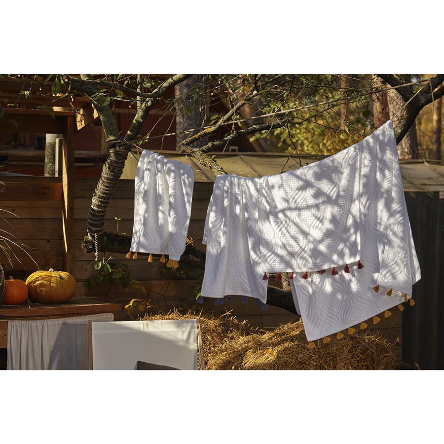 Банное полотенце из коллекции Essential – качественный текстиль из экологичного хлопка, который идеально подойдет для ежедневного использования и украсит вашу ванную комнату. Мягкая, приятная на ощупь ткань превосходно впитывает влагу и дарит комфорт при контакте с кожей. Материал абсолютно гипоаллергенен, так как не содержит синтетических волокон, при этом обладает высокими показателями прочности и износостойкости. Дизайн полотенца вдохновлен этническими мотивами, что подчеркивают декоративные элементы в виде кисточек контрастного оттенка. Размеры изделия указаны без учета бахромы и декоративных элементов. Материал: 100% хлопок. Плотность: 610 GSM. Размеры: 70х140 см. ! Максимальная температура стирки 40° C ! Гладить при максимальной температуре 110° C ! Барабанная сушка запрещена ! Не отбеливать ! Сухая чистка запрещена