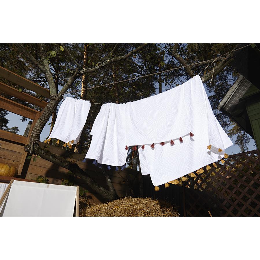 Полотенце для рук из коллекции Essential – качественный текстиль из экологичного хлопка, который идеально подойдет для ежедневного использования и украсит вашу ванную комнату. Мягкая, приятная на ощупь ткань превосходно впитывает влагу и дарит комфорт при контакте с кожей. Материал абсолютно гипоаллергенен, так как не содержит синтетических волокон, при этом обладает высокими показателями прочности и износостойкости. Дизайн полотенца вдохновлен этническими мотивами, что подчеркивают декоративные элементы в виде кисточек контрастного оттенка. Размеры изделия указаны без учета бахромы и декоративных элементов. Материал: 100% хлопок. Плотность: 610 GSM. Размеры: 50х90 см. ! Максимальная температура стирки 40° C ! Гладить при максимальной температуре 110° C ! Барабанная сушка запрещена ! Не отбеливать ! Сухая чистка запрещена