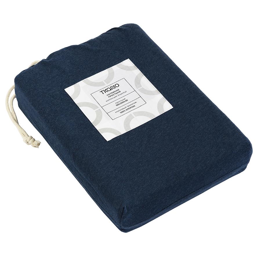 Остальные предметы Tkano Простыня на резинке из хлопкового трикотажа темно-синего цвета из коллекции essential, 160х200х30 см арт. TK23-FS0007
